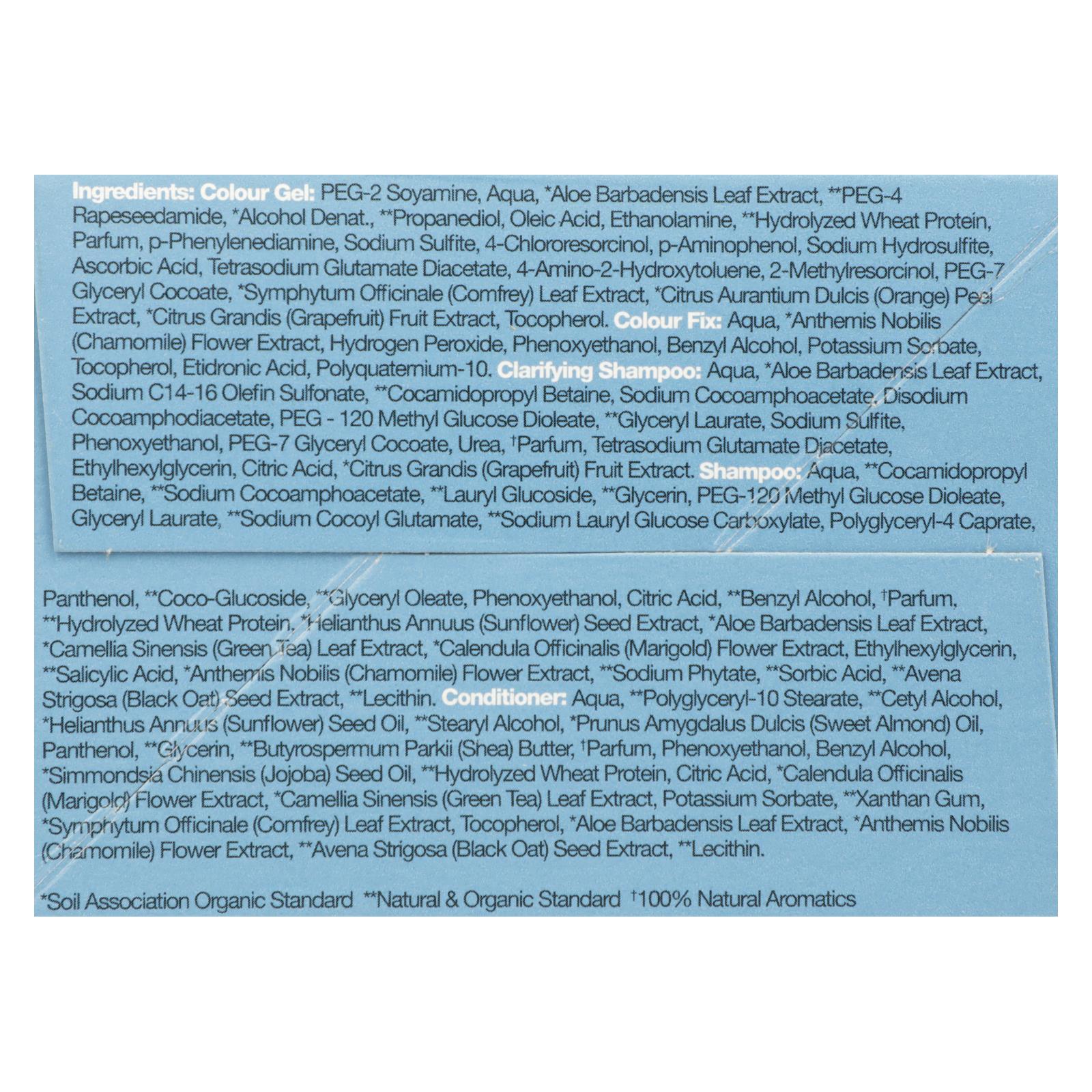 ingredients : colour gel: peg-2 soyamine;aqua;aloe barbadensis leaf extract;peg-4 rapeseedamide;alcohol denat;propanediol;oleic acid;ethanolamine;hydrolyzed wheat protein;parfum;p-phenylenediamine;sodium sulfite;4-chlororesorcinol;p-aminophenol;sodium hydrosulfite;ascorbic acid;tetrasodium glutamate diacetate;4-amino-2-hydroxytoluene;2-methylresorcinol;peg-7 glyceryl cocoate;symphytum officinale;comfrey;leaf extract;citris aurantium dulcis;orange;peel extract;citrus grandis;grapefruit;fruit extract;tocopherol