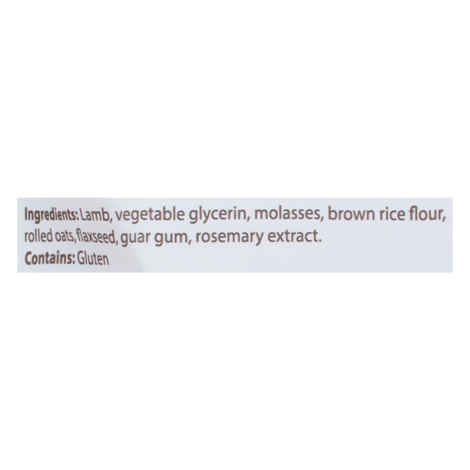 ingredients : lamb lung;vegetable glycerin;molasses;brown rice;rolled oats;flaxseed;guar gum;rosemary extract