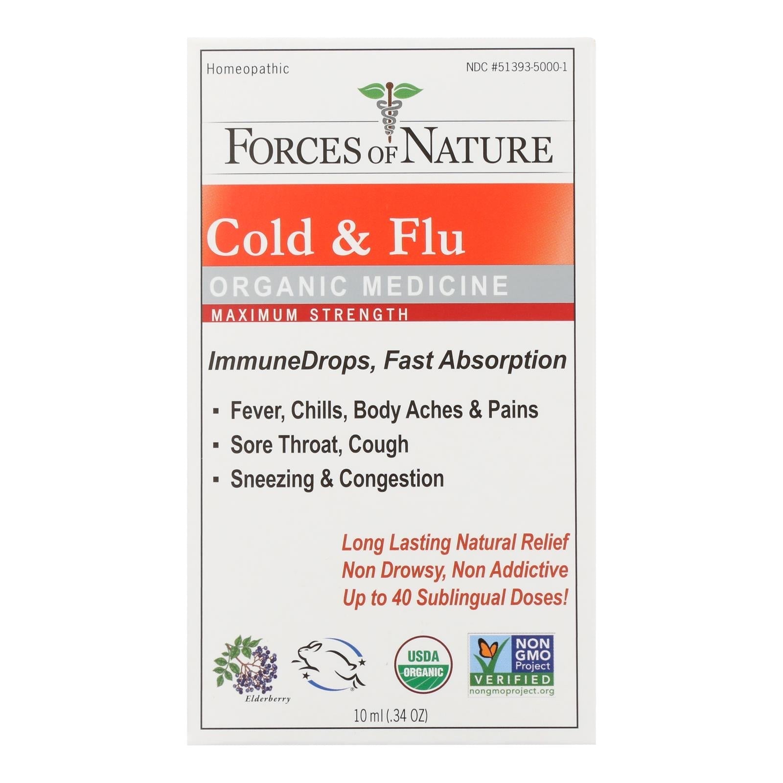 Usda certified organic. Usda organic. Certified organic by scs global services. Non gmo project verified. Nongmoproject.org. Homeopathic. Immunedrops, fast absorption. Fever, chills, body aches & pains. Sore throat, cough. Sneezing & congestion. Long lasting natural relief non drowsy, non addictive up to 40 sublingual doses! the purest ingredients on earth: we proudly manufacture powerful usda certified organic medicines which deliver results time after time. We source from elite organic growers across the planet: from high in the andes, himalayan and rocky mountains to the island of java, madagascar, and corsica and small organic farms in california. This allows us to provide the ultimate in purity and therapeutic value for our medicines. We insist on the highest quality standards and believe in the power of our treatments. We think you will too. Pesticide free. The power of elderberry: elderberry may have a positive effect on the immune system and be of benefit for respiratory issues. It is used to treat symptoms including chills, night sweats, shivering and helps balance the system. The power of solidago virga: this medicinal plant is especially valuable for cold/flu symptoms including feeling of weakness, chills alternating with heat, congestion, burning in the throat, and overall body ache commonly associated with the cold & flu. Satisfaction guaranteed. Www.forcesofnaturemedicine.com. Questions or comments? call us at 1-877-975-3797 or visit our website www.forcesofnaturemedicine.com. Cruelty free. Made in the usa.