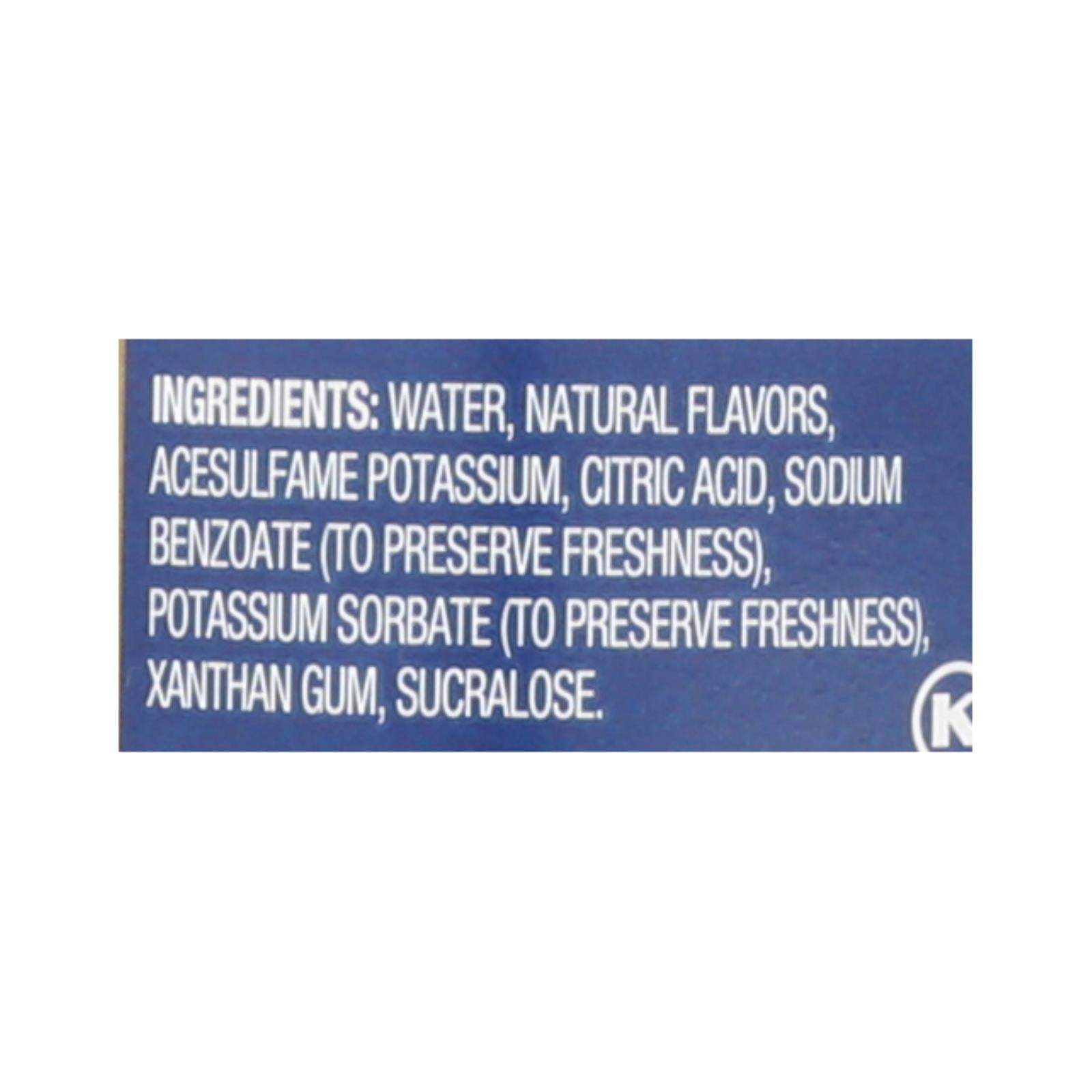 ingredients : water;natural flavors;acesulfame potassium;citric acid;potassium sorbate (to preserve freshness);sodium benzoate (to preserve freshness);xanthan gum;sucralose