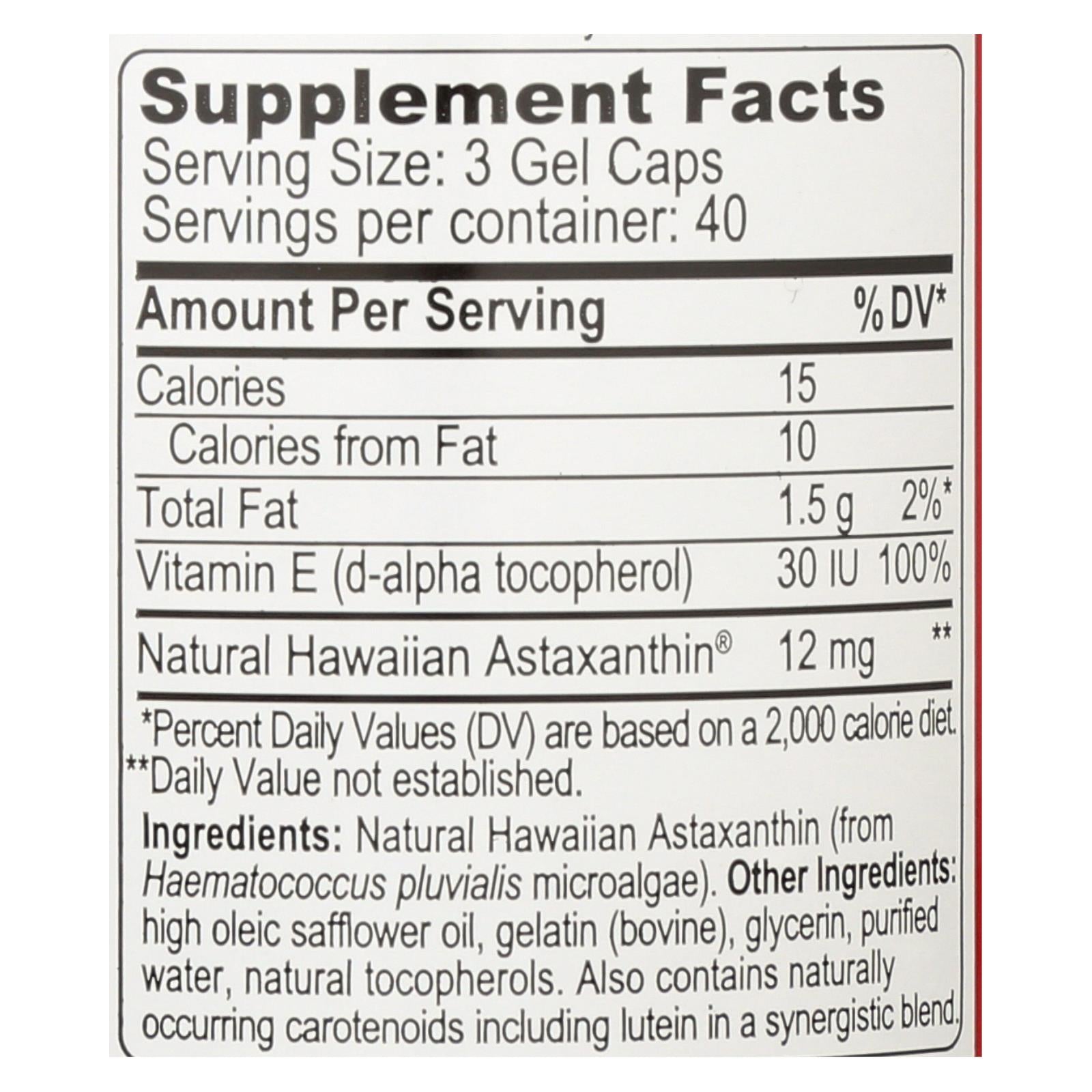 ingredients : natural hawaiian astaxanthin;from haematococcus pluvialis microalgae