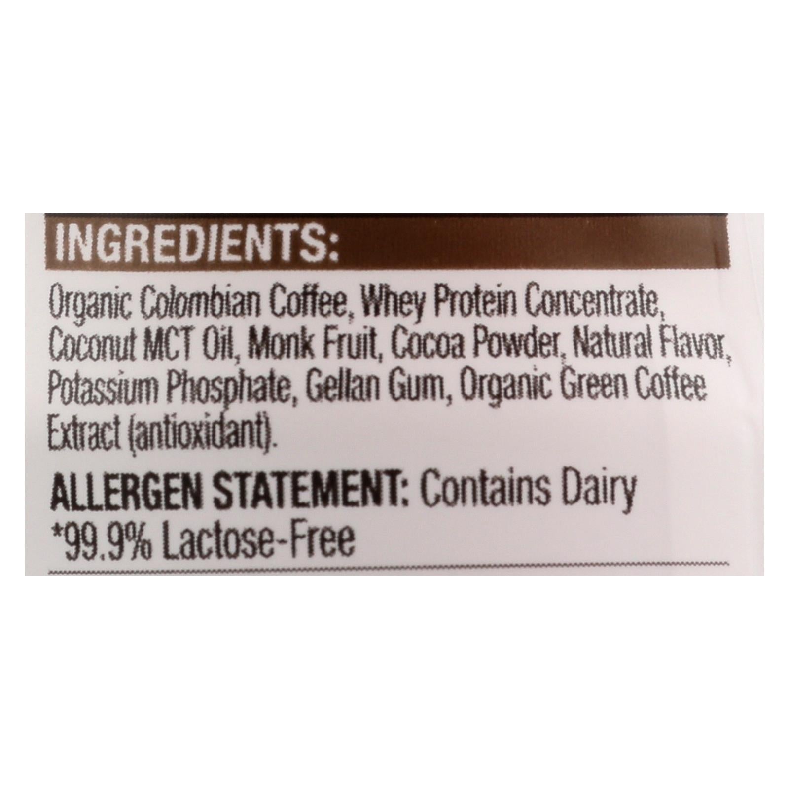 ingredients : colombian coffee;milk protein isolate;cocoa powder;mct oil;natural flavor;potassium phosphate;monk fruit;organic green coffee caffeine;gellan gum