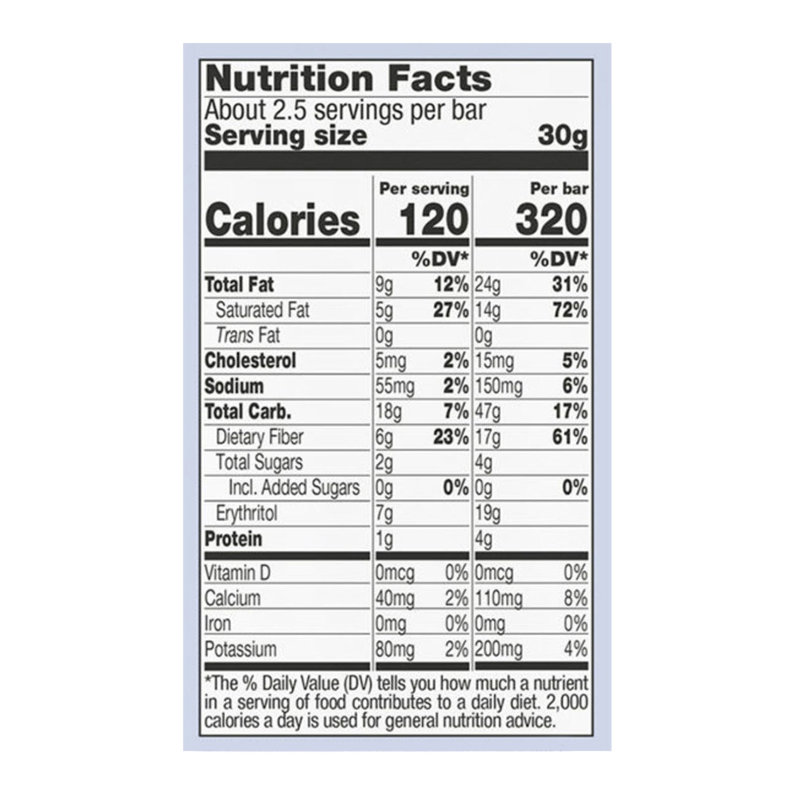 ingredients : cocoa butter;erythritol ;milk (rbst free);cookie pieces (rice flour, erythritol , cocoa, canola oil, corn starch , glycerin, salt, cellulose, natural flavors);dextrin ;chicory root fiber;milk fat (rbst free);sunflower lecithin;natural flavors;salt;stevia extract