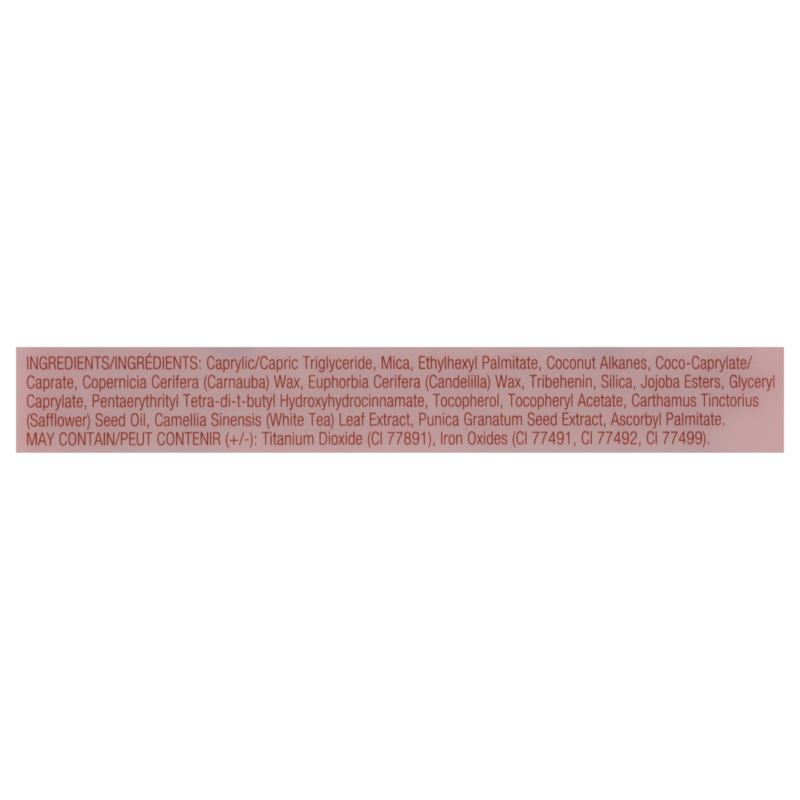 ingredients : caprylic/capric triglyceride;mica;ethylhexyl palmitate;coconut alkanes;coco-caprylate/caprate;copernicia cerifera (carnauba) wax;euphorbia cerifera (candelilla) wax;tribehenin;silica;jojoba esters;glyceryl caprylate;pentaerythrityl tetra-di-t-butyl hydroxyhydrocinnamate;tocopherol;tocopheryl acetate;carthamus tinctorius (safflower) seed oil;camellia sinensis (white tea) leaf extract;punica granatum seed extract;ascorbyl palmitate