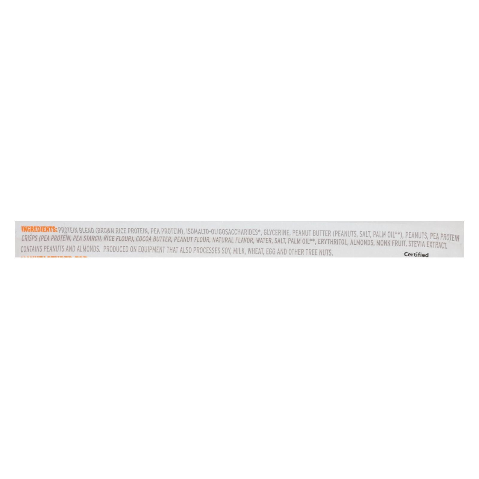 ingredients : protein blend;brown rice protein;pea protein;isomalto-oligosaccharides;glycerine;peanut butter;peanuts;salt;palm oil;pea protein crisps;pea starch;rice flour;cocoa butter;peanut flour;natural flavor;water;erythritol;almonds;monk fruit;stevia extract