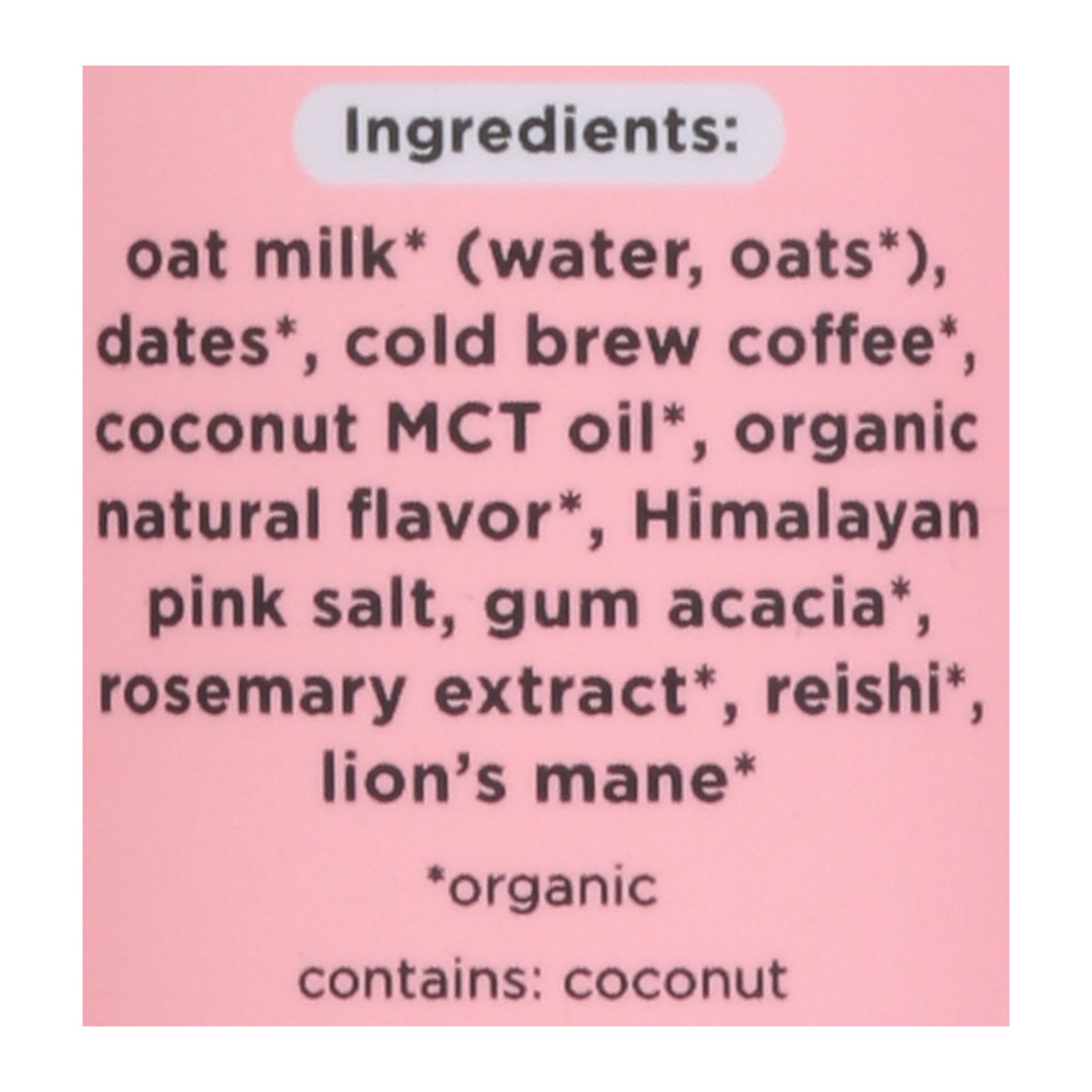 Single shot coffee. +lion's mane & reishi. Your daily latte boosted with functional mushrooms. Your daily latte with benefits. A delicious blend of organic coffee, oat milk, dates and functional mushrooms. Function mushrooms: with lion's mane and reishi. Clean caffeine: from organic, fair trade coffee. Remove label to improve recycling. Fair trade. Women founded.
