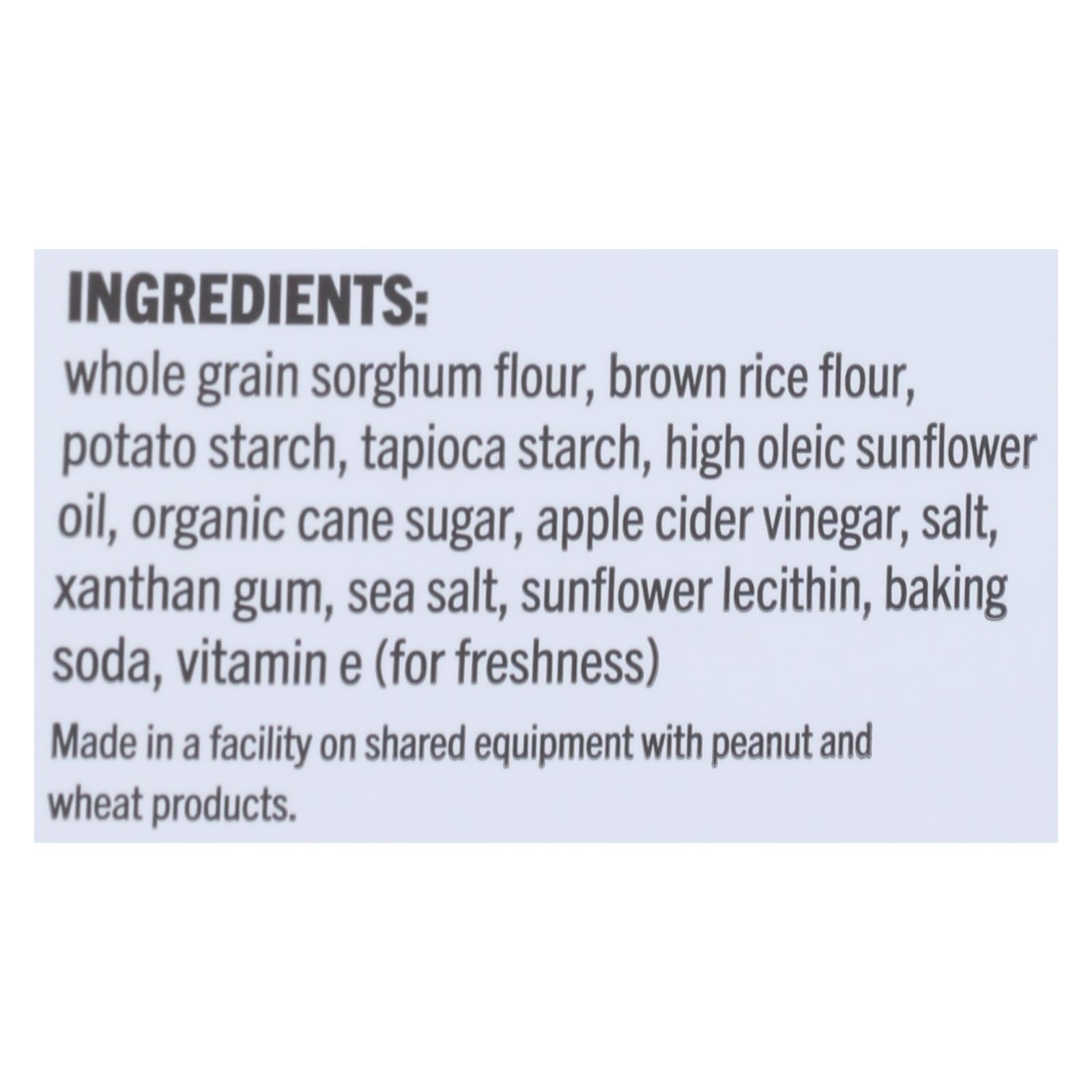 ingredients : whole grain sorghum flour;rice flour;potato starch;tapioca starch;high oleic sunflower oil;organic cane sugar;salt;apple cider vinegar (diluted with water to 5% acidity);xanthan gum;sunflower lecithin;baking soda;mixed tocopherols (to retain freshness)