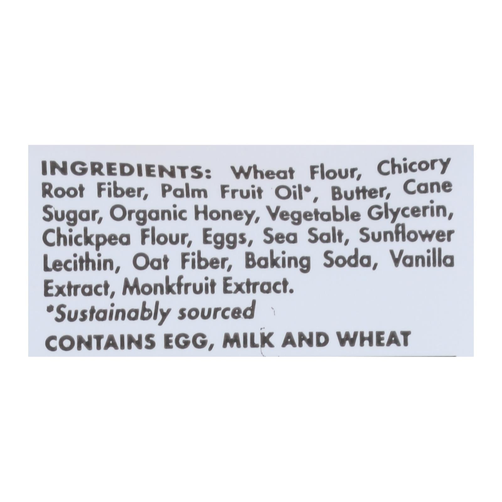 ingredients : wheat flour;chicory root fiber;palm fruit oil;butter;cane sugar;organic honey;vegetable glycerin;chickpea flour;eggs;sea salt;sunflower lecithin;oat fiber;baking soda;vanilla extract;monkfruit extract