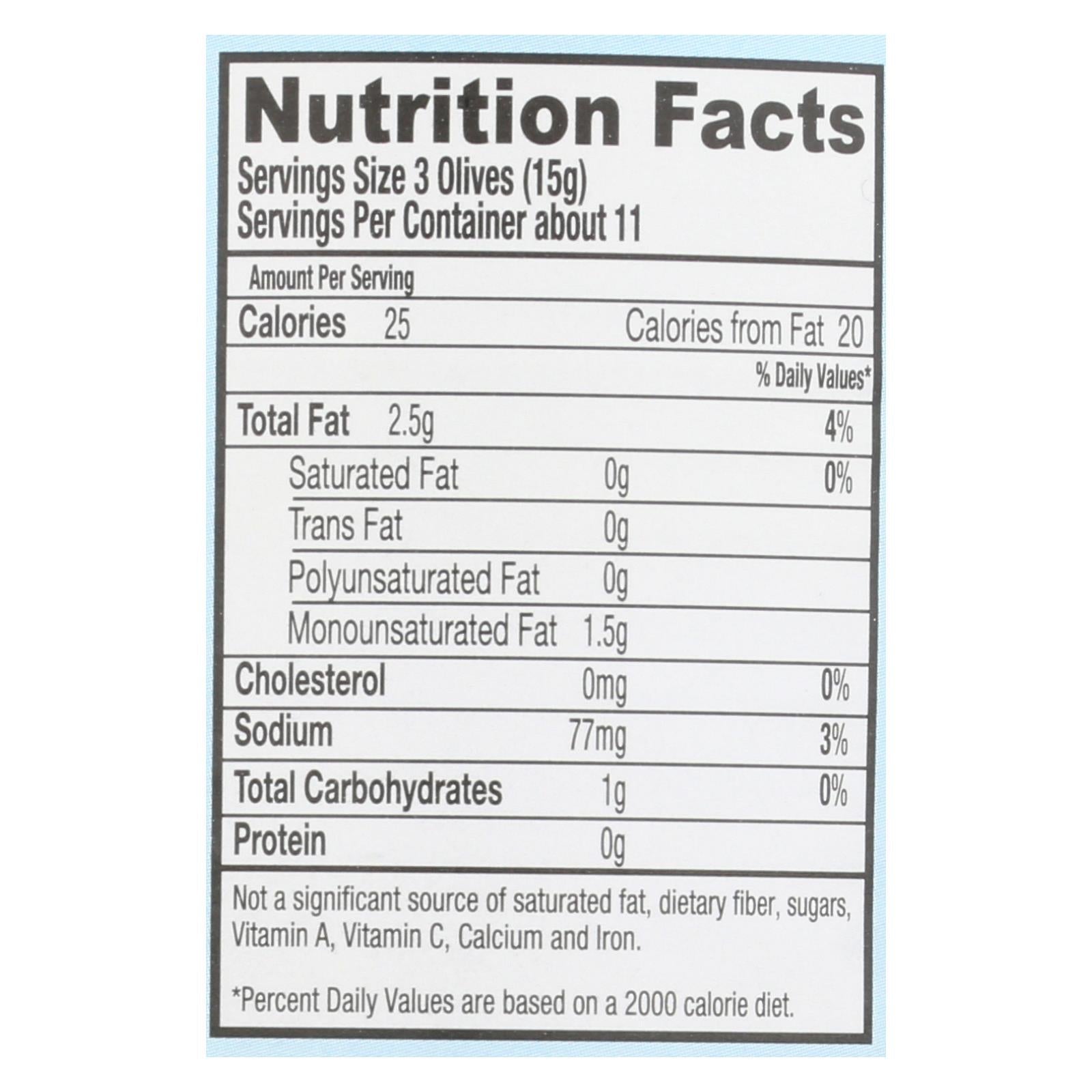 Santa Barbara Pitted Olives - Large Black - Case Of 12 - 5.75 Oz.