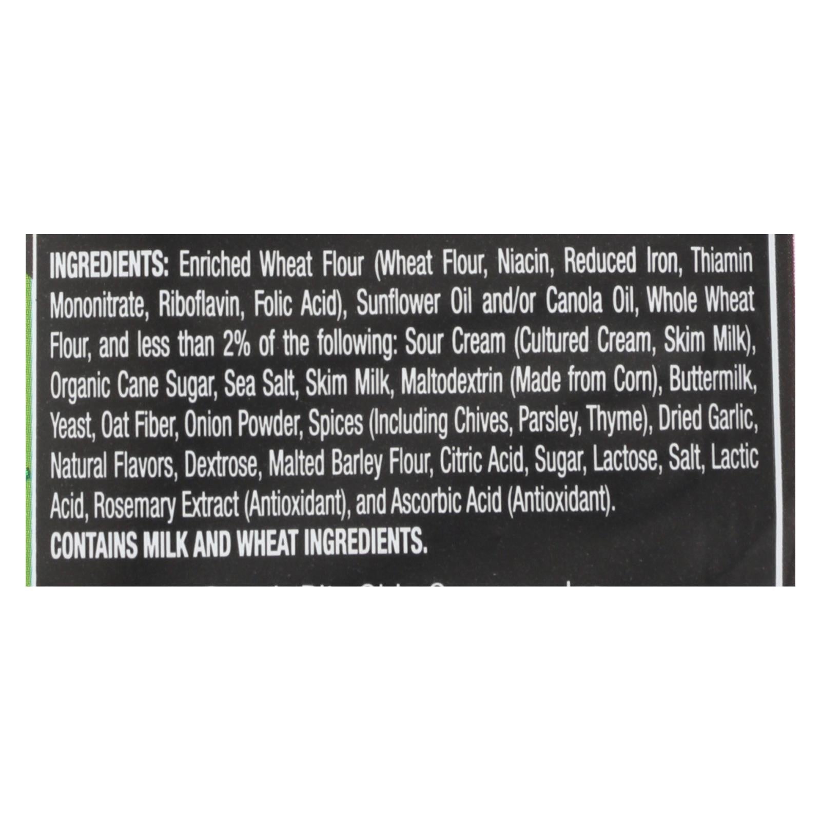 Stacy’s pita crisps, garlic & herb flavor are a natural and healthy a snacking option. Because stacy’s pita crisps do not contain artificial colors, flavors or msg, they are free from many harmful and or unnecessary additives. This product has a low saturated fat content and are baked for a rich, toasty flavor. Stacy’s pita crisps are packaged in resealable bags to ensure freshness after opening. Each bag of stacy’s pita crisps, garlic & herb flavor weighs 6.75 oz. And contains 7 servings, with 130 calories per serving. See nutrition facts panel for allergens.