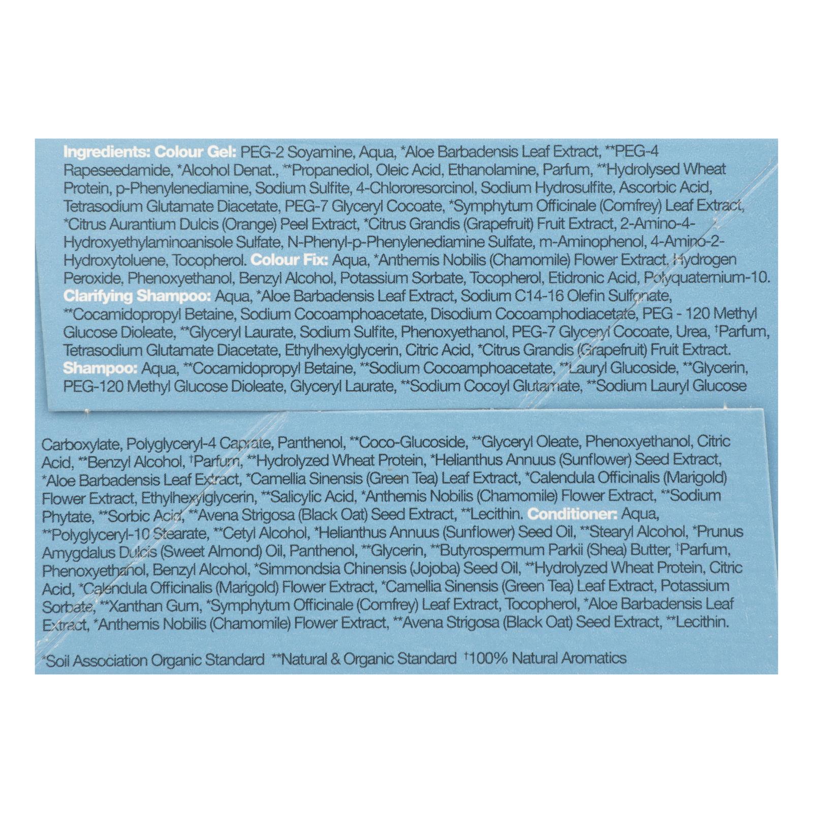 ingredients : colour gel: peg-2 soyamine;aqua;aloe barbadensis leaf extract;peg-4 rapeseedamide;alcohol denat;propanediol;oleic acid;ethanolamine;parfum;hydrolysed wheat protein;p-phenylenediamine;sodium sulfite;4-chlororesorcinol;sodium hydrosulfite;ascorbic acid;tetrasodium glutamate diacetate;peg-7 glyceryl cocoate;symphytum officinale;comfrey;leaf extract;citrus aurantium dulcis;orange;peel extract;citrus grandis;grapefruit;fruit extract;2-amino-4-hydroxyethylaminoanisole sulfate;n-phenyl-p-phenylenediami