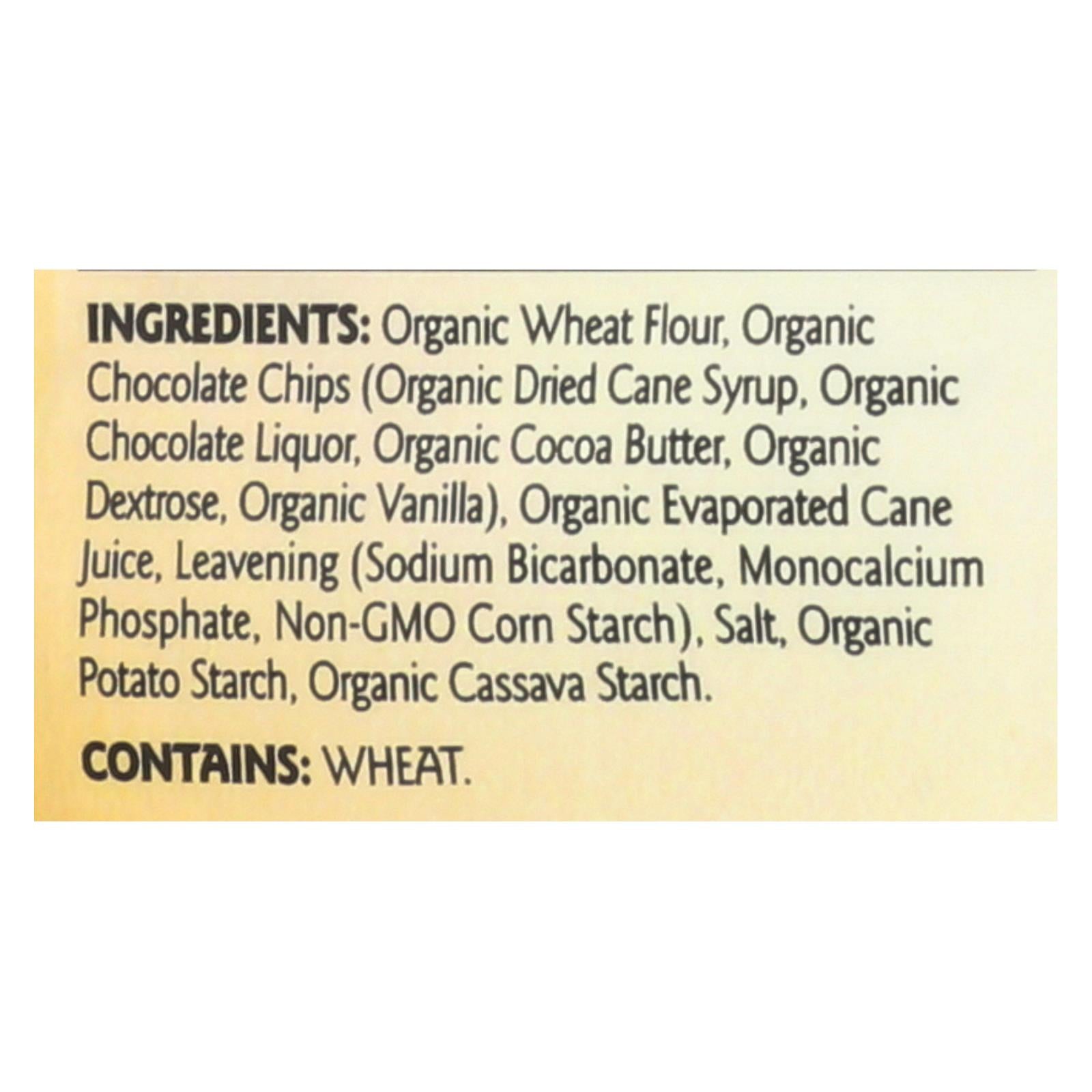 ingredients : organic wheat flour;organic dark chocolate chips;organic dried cane syrup;organic chocolate liquor;organic cocoa butter;organic dextrose;organic vanilla;organic evaporated cane sugar;leavening;sodium bicarbonate;monocalcium phosphate;non-gmo corn starch;salt;organic potato starch;organic cassava starch