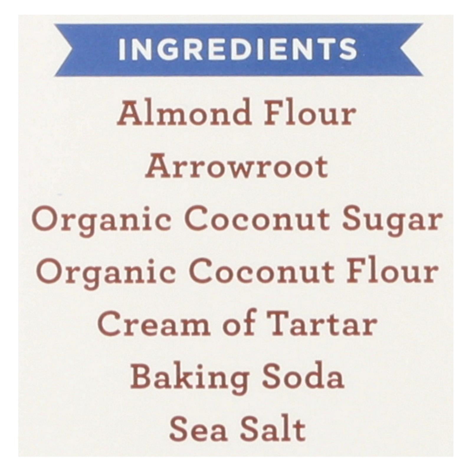 ingredients : almond flour arrowroot organic coconut sugar organic coconut flour cream of tartar baking soda sea salt