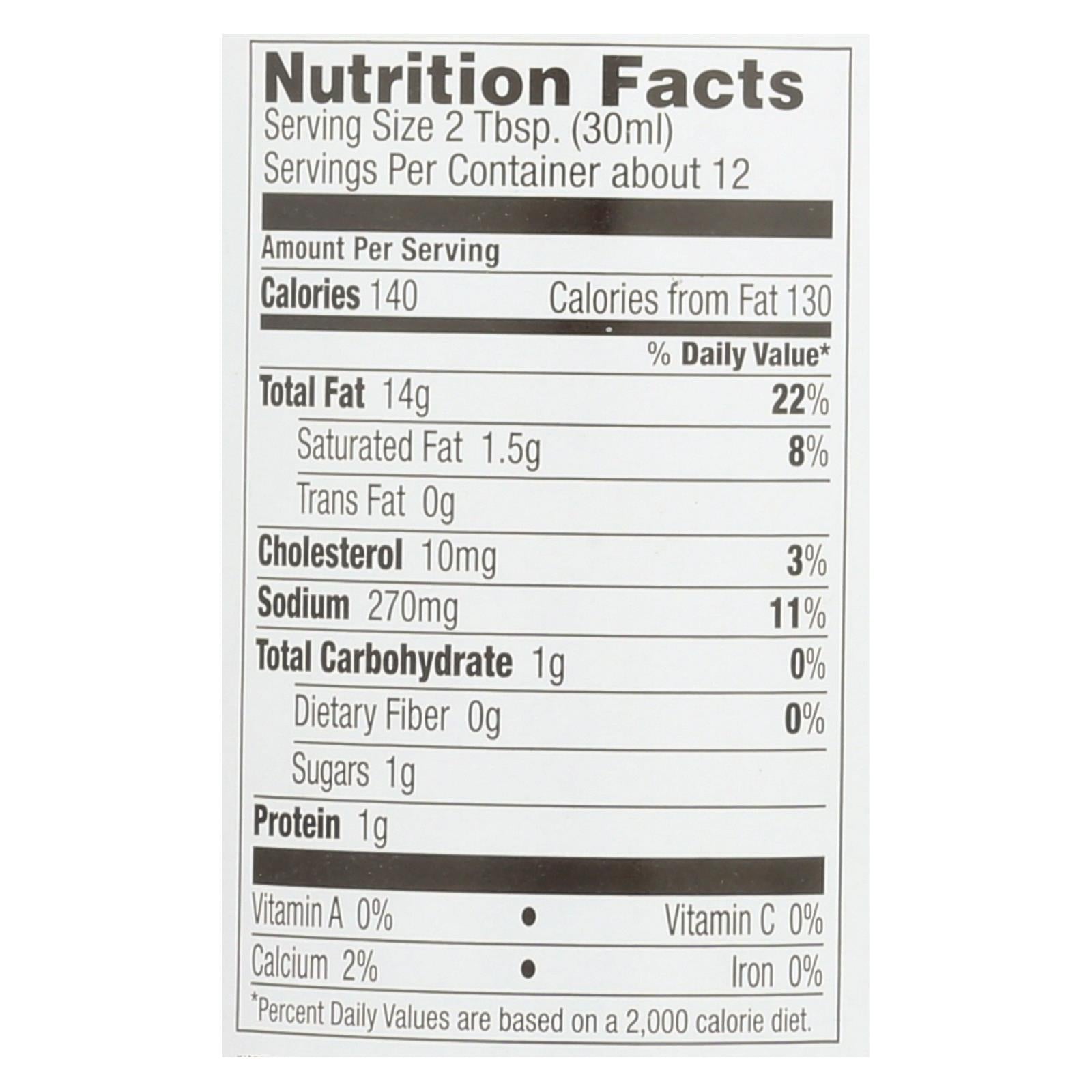 ingredients : canola oil;water;rice vinegar;asiago cheese;pasteurized milk;cheese cultures;salt;enzymes;powdered cellulose;to prevent caking;balsamic vinegar;garlic puree;garlic;citric acid;egg yolk powder;cane sugar;worcestershire sauce;distilled vinegar;soy sauce;hydrolyzed soy protein;corn syrup;caramel color;potassium sorbate [preservative];sugar;tamarind extract;spices;dried garlic;dried onion;xanthan gum;natural flavors;dijon mustard;mustard vinegar;mustard seed;sea salt;white wine;tartaric acid;sodium
