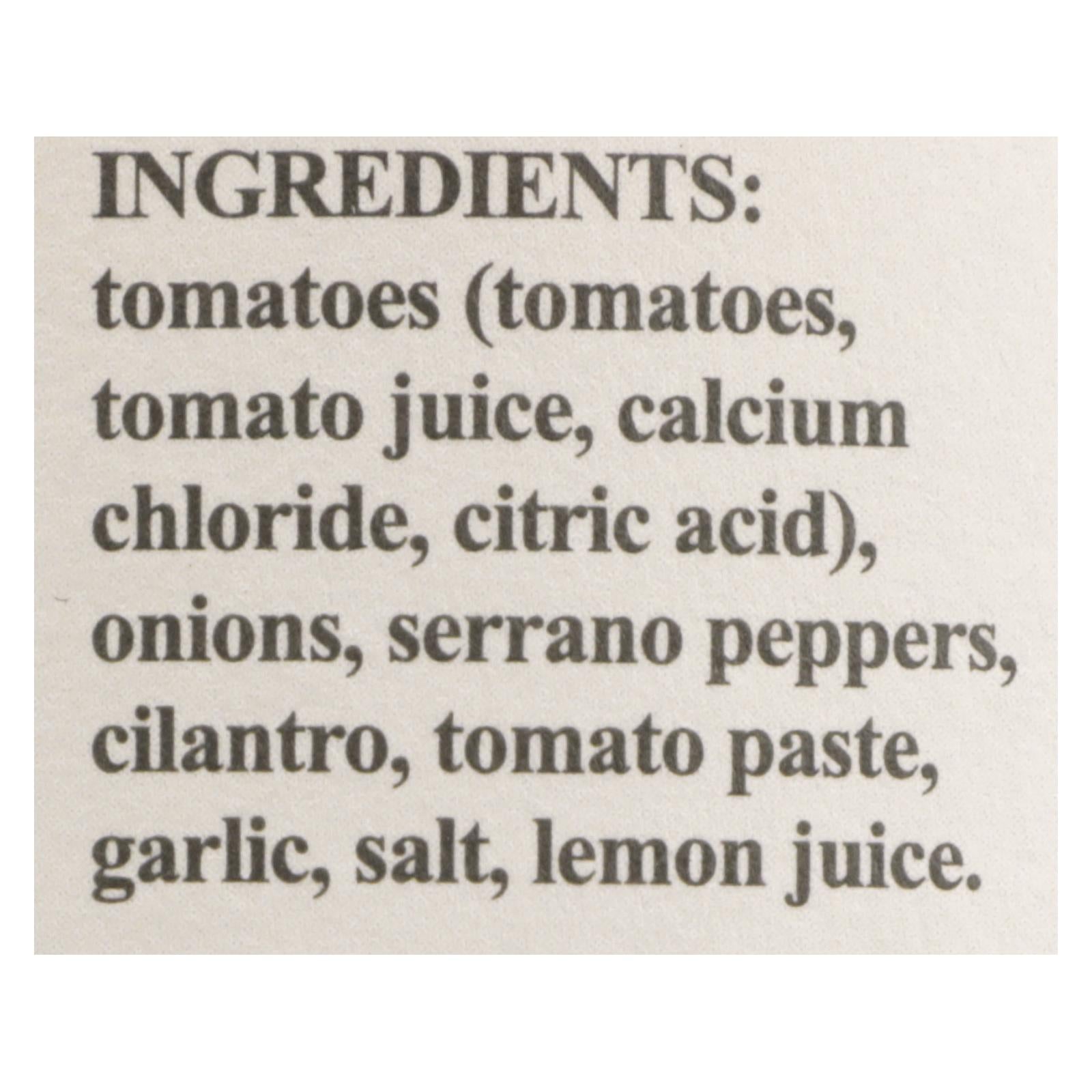 ingredients : tomatoes;tomato juice;calcium chloride;citric acid;onions;serrano peppers;cilantro;tomato paste;garlic;salt;lemon juice