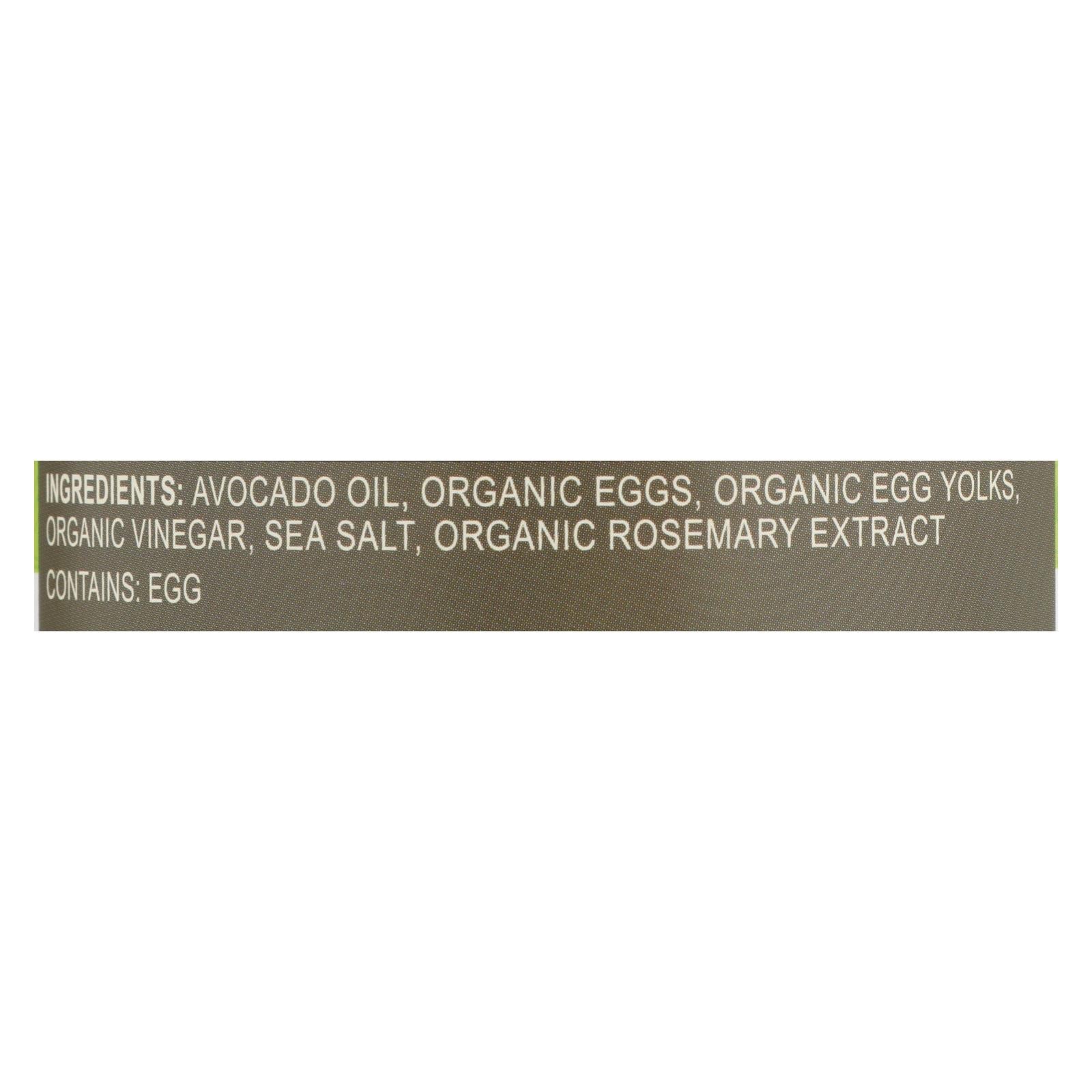 ingredients : avocado oil;organic eggs;organic egg yolks;organic vinegar;sea salt;organic rosemary extract