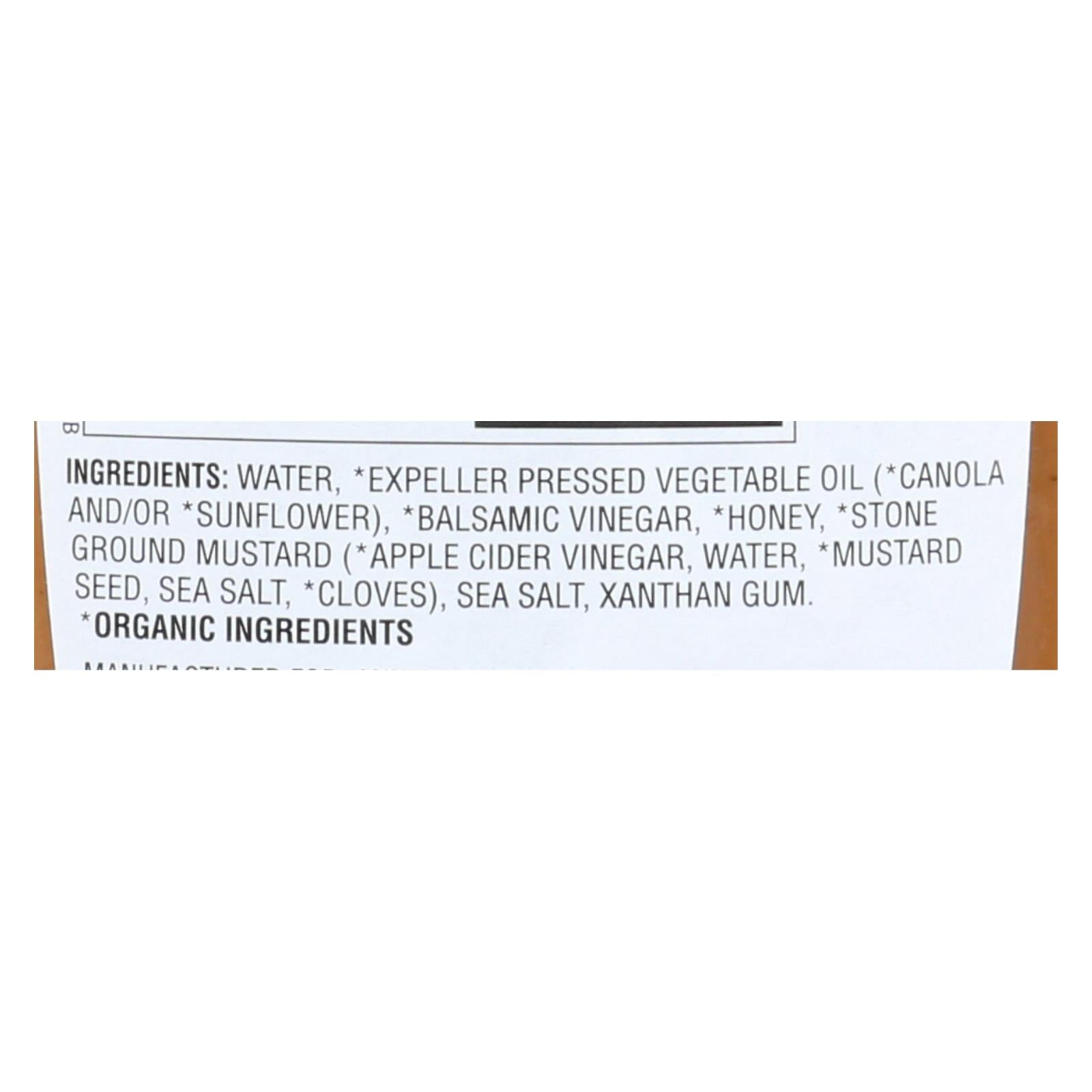 ingredients : water;expeller-pressed canola oil;balsamic vinegar;honey;stoneground mustard* (apple cider vinegar*, water, mustard seed*, sea salt, cloves*);sea salt;xanthan gum