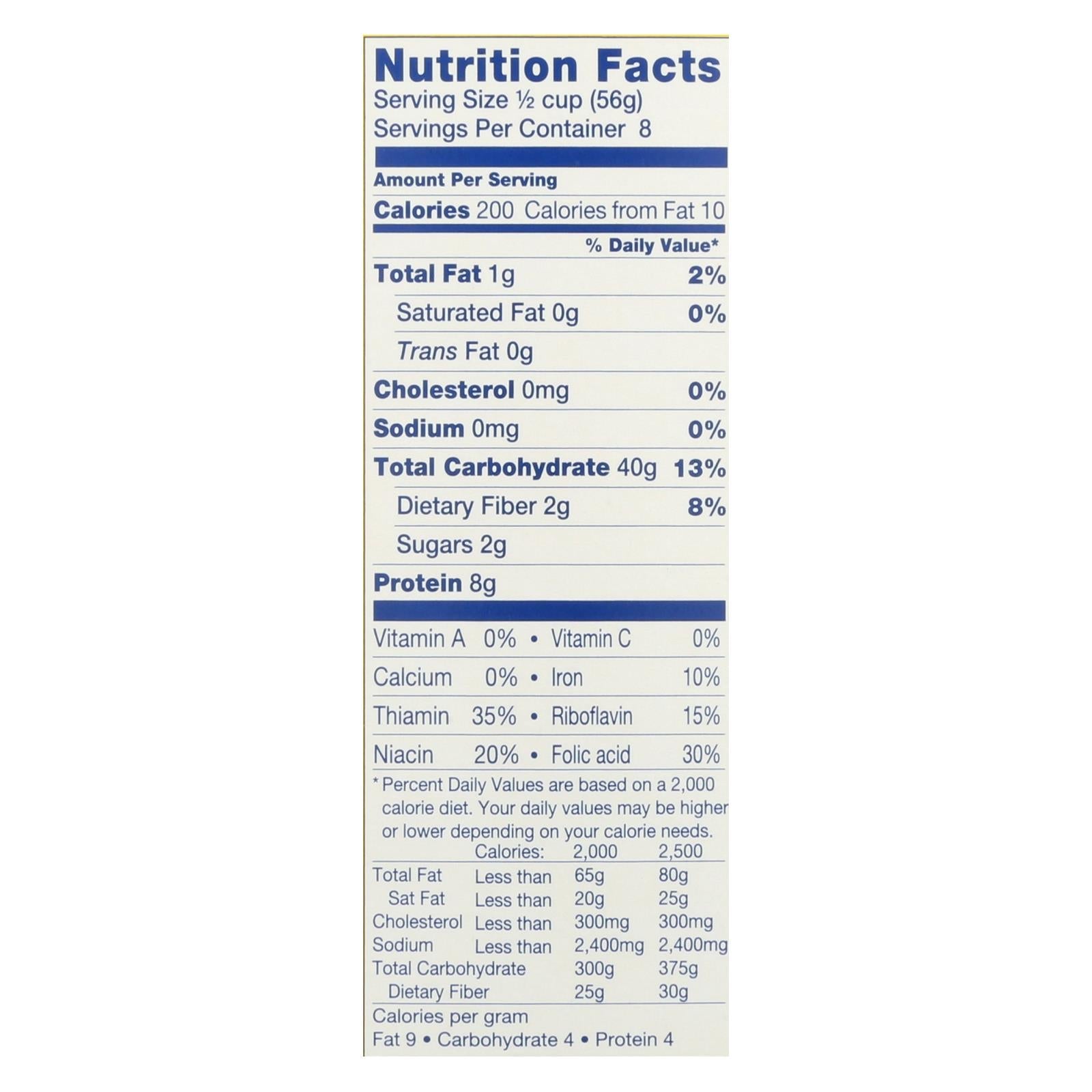 ingredients : durum wheat semolina;vitamins;niacin;thiamine mononitrate;riboflavin;folic acid;iron;ferrous lactase