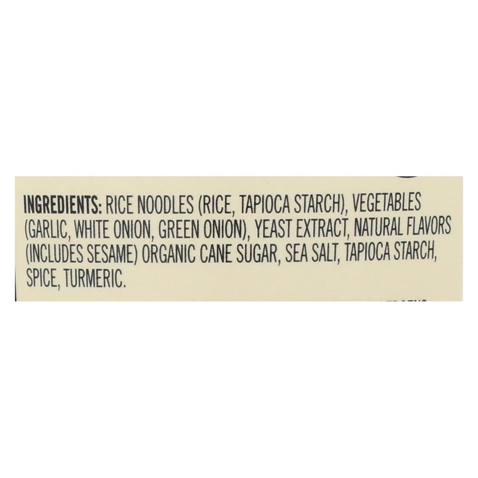 ingredients : rice noodles;rice;tapioca starch;vegetables;garlic;white onion;green onion;yeast extract;natural flavors;includes sesame;organic cane sugar;sea salt;spice;turmeric