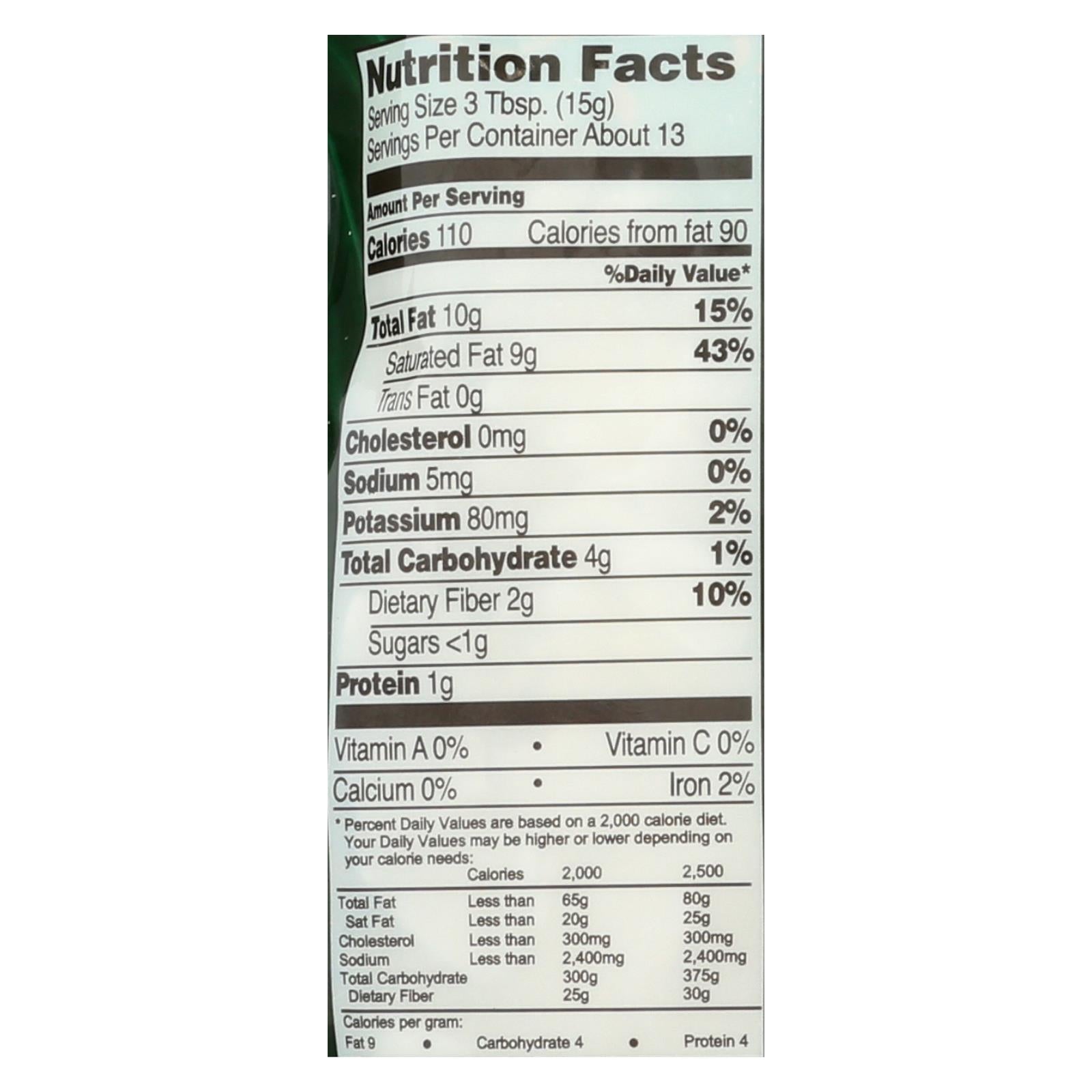 Let's do… organic coconut flakes are our gluten-free and vegan friendly flakes that are unsweetened and free of trans fat. They're usda organic and heart k kosher certified. There are 110 calories per serving and each 7 oz. Bag has 3-1/2 cups of flakes that breaks down to 13 servings. They make a perfect topping to your favorite dishes and baked goods.