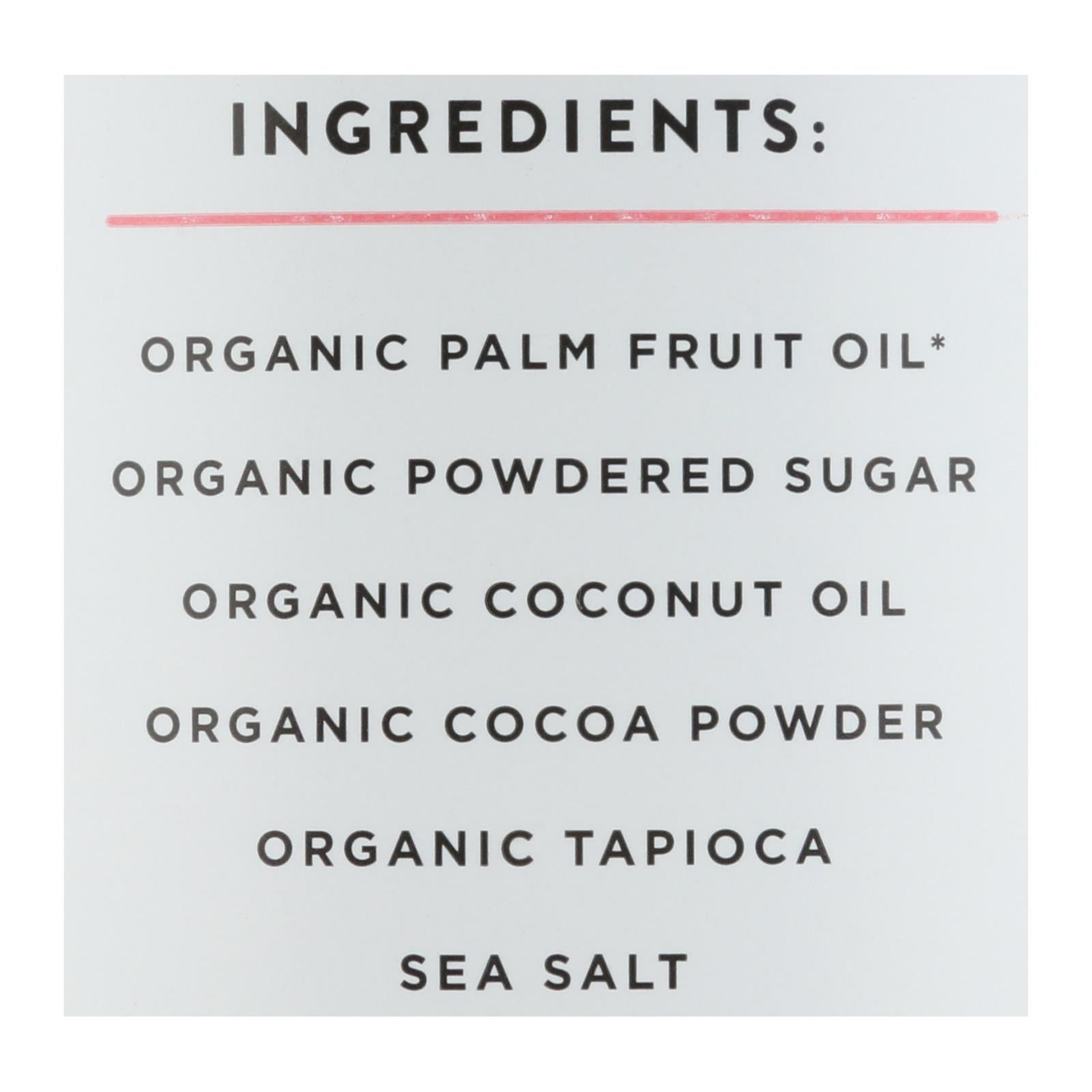 ingredients : organic palm fruit oil* organic powdered sugar organic coconut oil organic cocoa powder organic tapioca sea salt