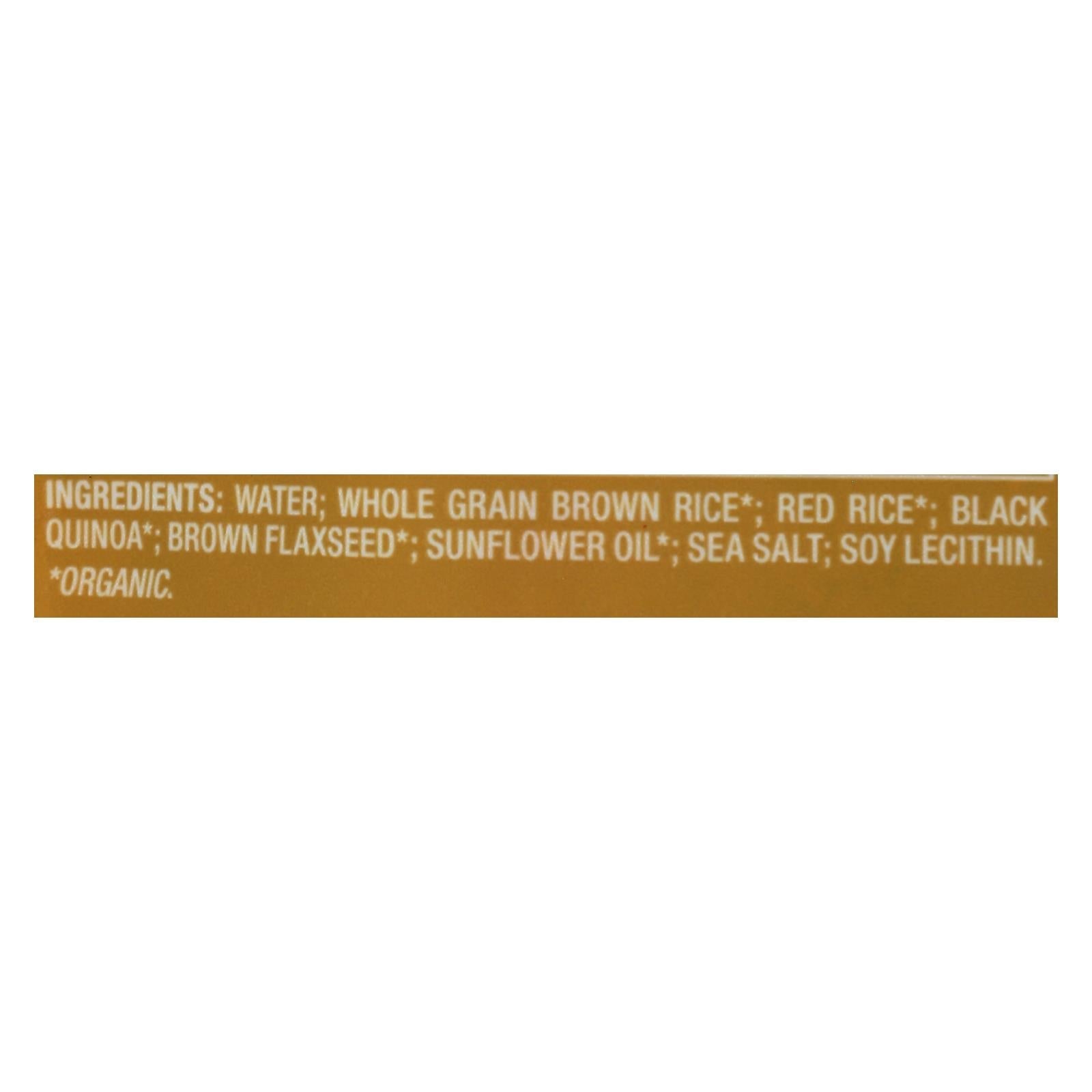 ingredients : water;wholegrain brown rice;red rice;black quinoa;brown flaxseed;sunflower oil*†;sea salt;soy lecithin