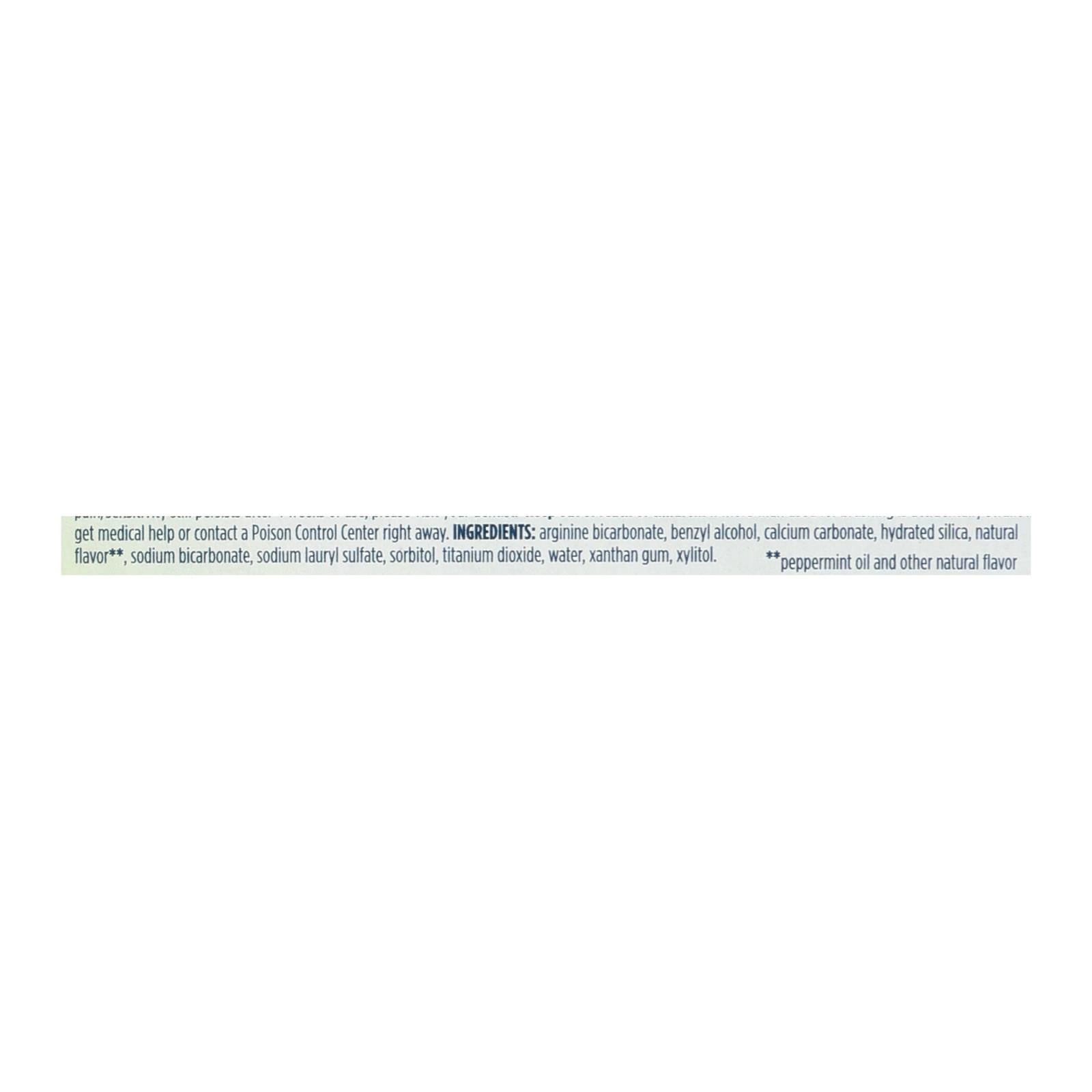 ingredients : arginine bicarbonate;benzyl alcohol;calcium carbonate;hydrated silica;natural flavor;sodium bicarbonate;sodium lauryl sulfate;sorbitol;titanium dioxide;water;xanthan gum;xylitol
