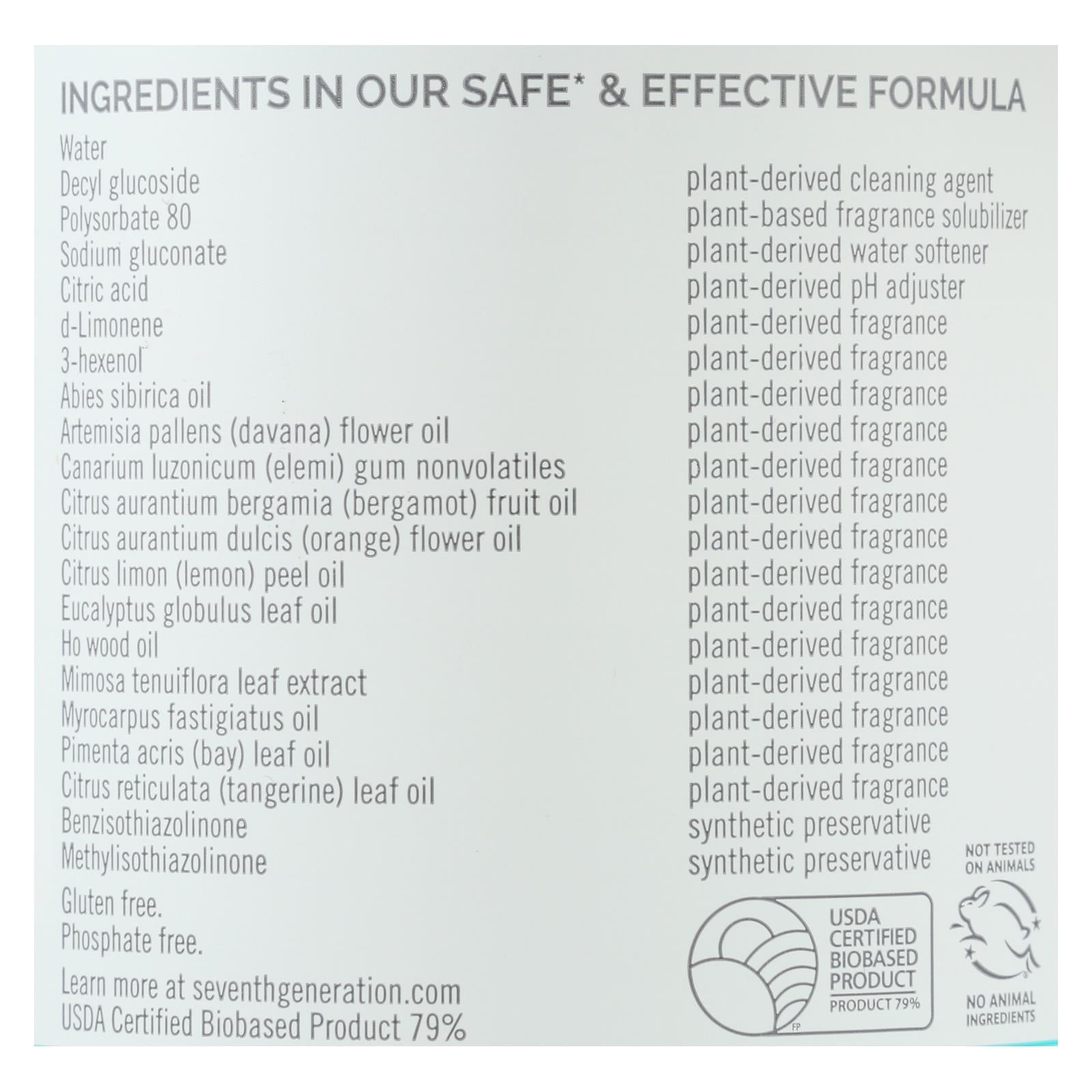 ingredients : water decyl glucoside plant-derived cleaning agent polysorbate 80 plant-based fragrance solubilizer sodium gluconate plant-derived water softener citric acid plant-derived ph adjuster d-limonene plant-derived fragrance 3-hexenol plant-derived fragrance abies sibirica oil plant-derived fragrance artemisia pallens;davana;flower oil plant-derived fragrance canarium luzonicum;elemi;gum nonvolatiles plant-derived fragrance citrus aurantium bergamia;bergamot;fruit oil plant-derived fragrance citrus au