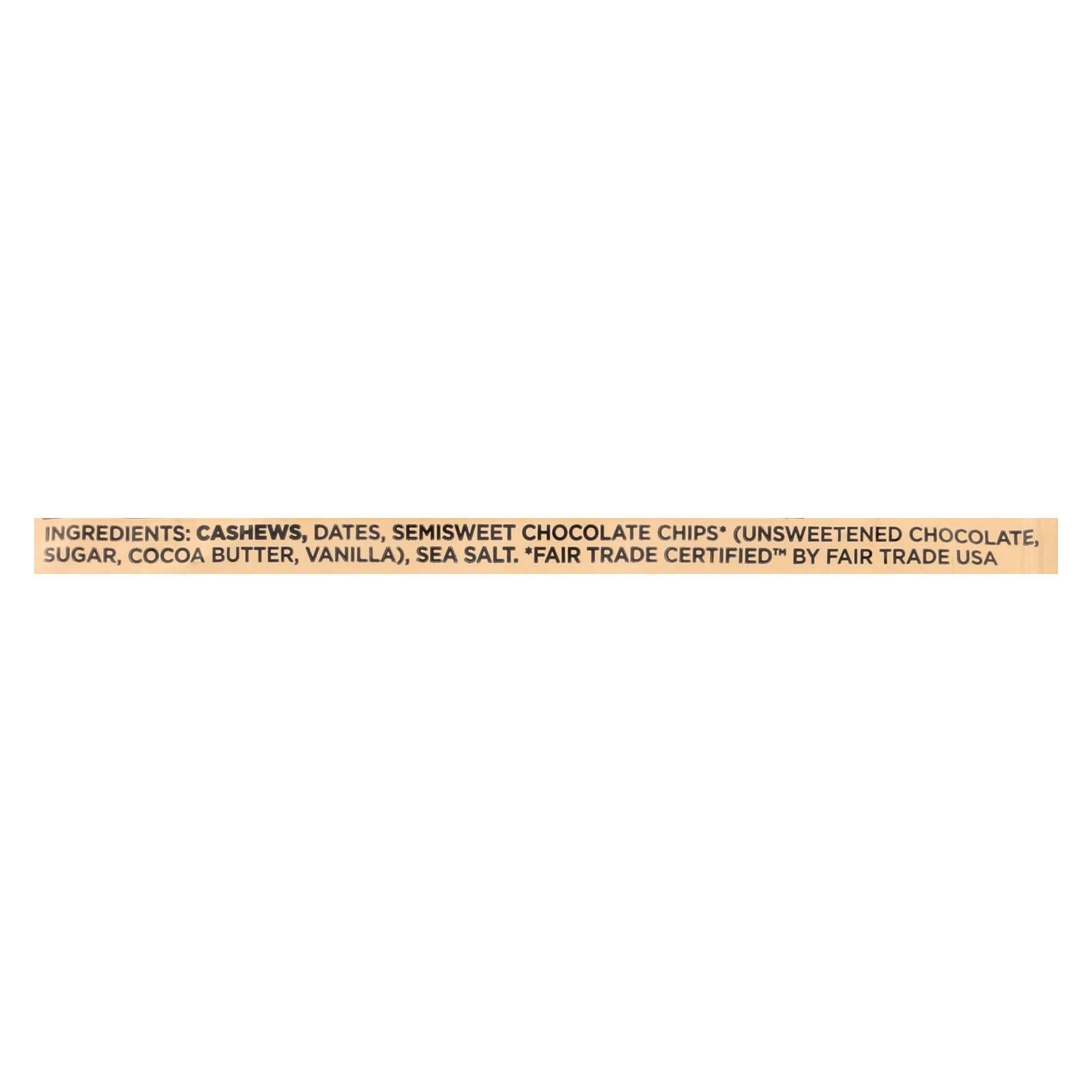 ingredients : cashews;dates;semisweet chocolate chips* (unsweetened chocolate, sugar, cocoa butter, vanilla);apples;sea salt;vanilla extract