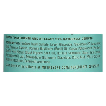 ingredients : contains: water;sodium lauryl sulfate;lauryl glucoside;polysorbate 20;lauramine oxide;fragrance;glycerin;ocimum basilicum;basil;oil;carum petroselinum;parsley;seed oil;piper nigrum;black pepper;quillaja saponaria;soap;bark extract;aloe barbadensis leaf;tetrasodium glutamate diacetate;citric acid;peg-5 cocoate;methylisothiazolinone;benzisothiazolinone