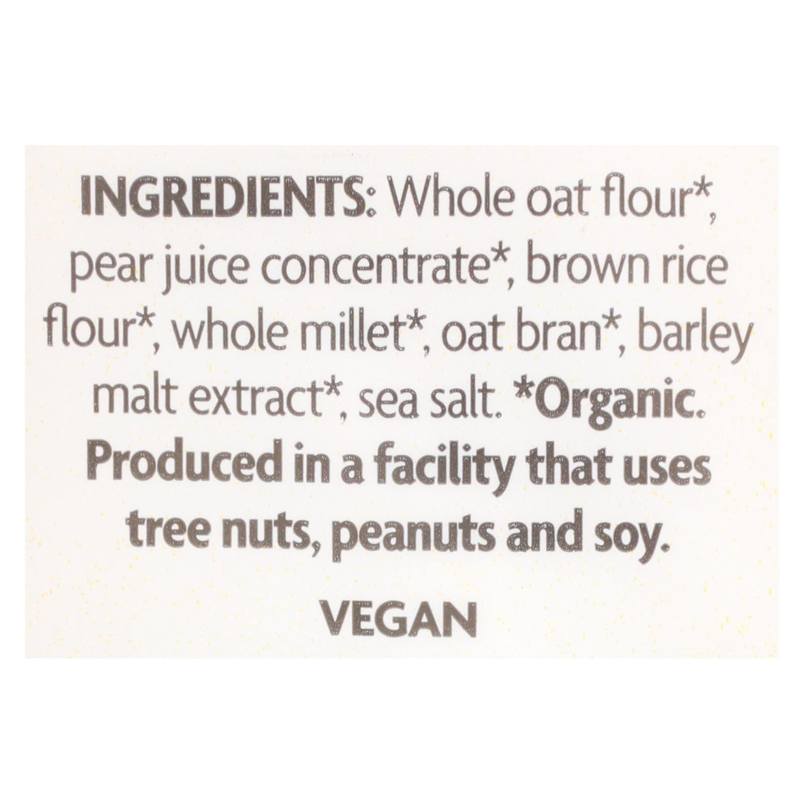 ingredients : whole oat flour;pear juice concentrate;brown rice flour;whole millet;oat bran;barley malt extract;sea salt