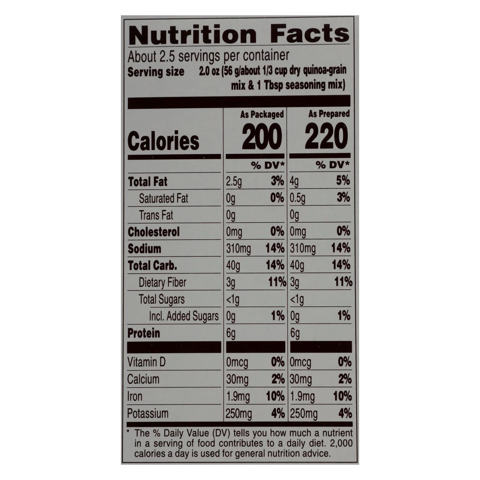 ingredients : quinoa;brown rice;red bell pepper;salt;yeast extract;garlic powder;maltodextrin;tomato powder;basil;onion powder;sugar;natural flavor;contains soy and wheat;citric acid;black pepper;spices;ascorbic acid