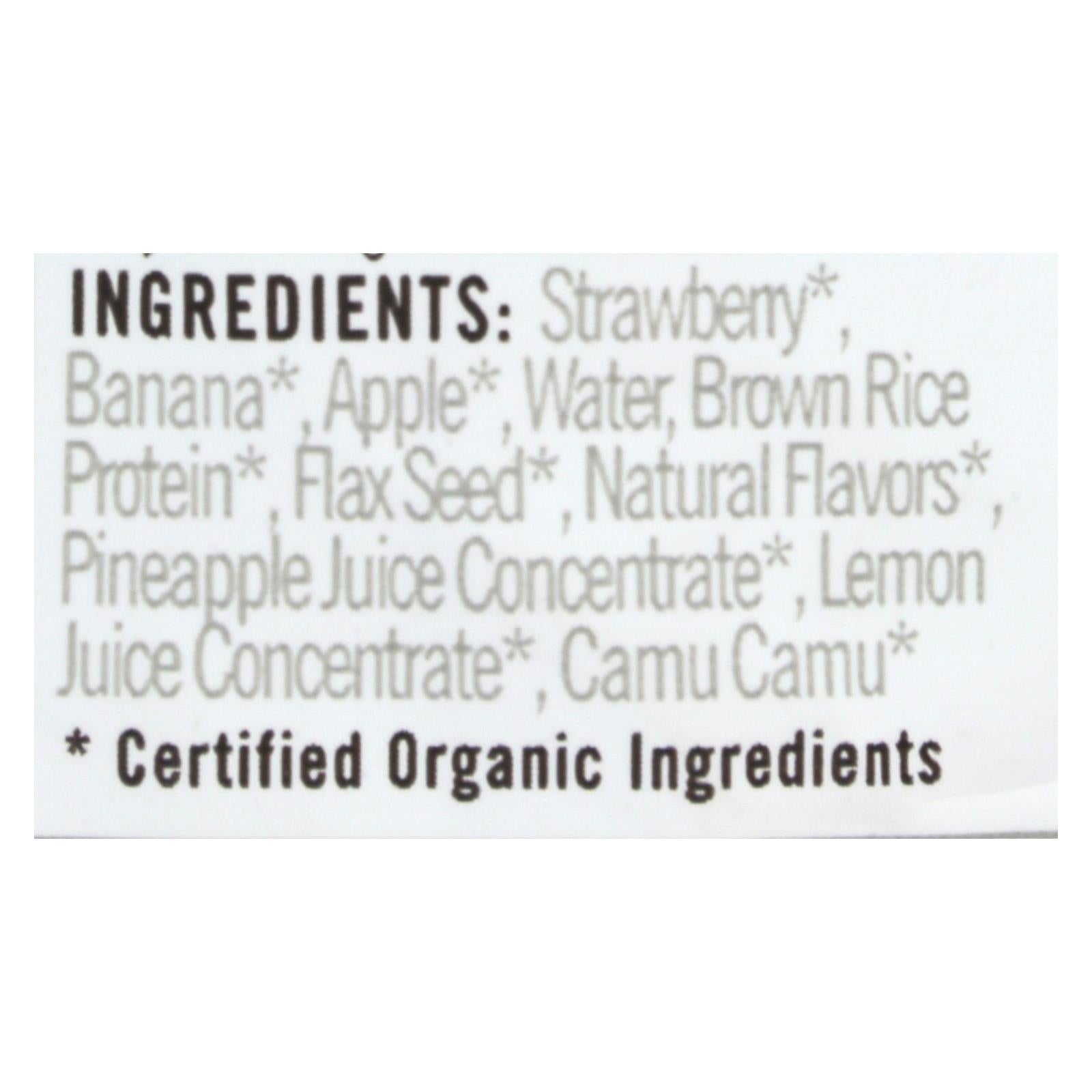 ingredients : strawberry;banana;apple;water brown rice protein;flax seed;natural flavors;pineapple juice concentrate;lemon juice concentrate;camu camu