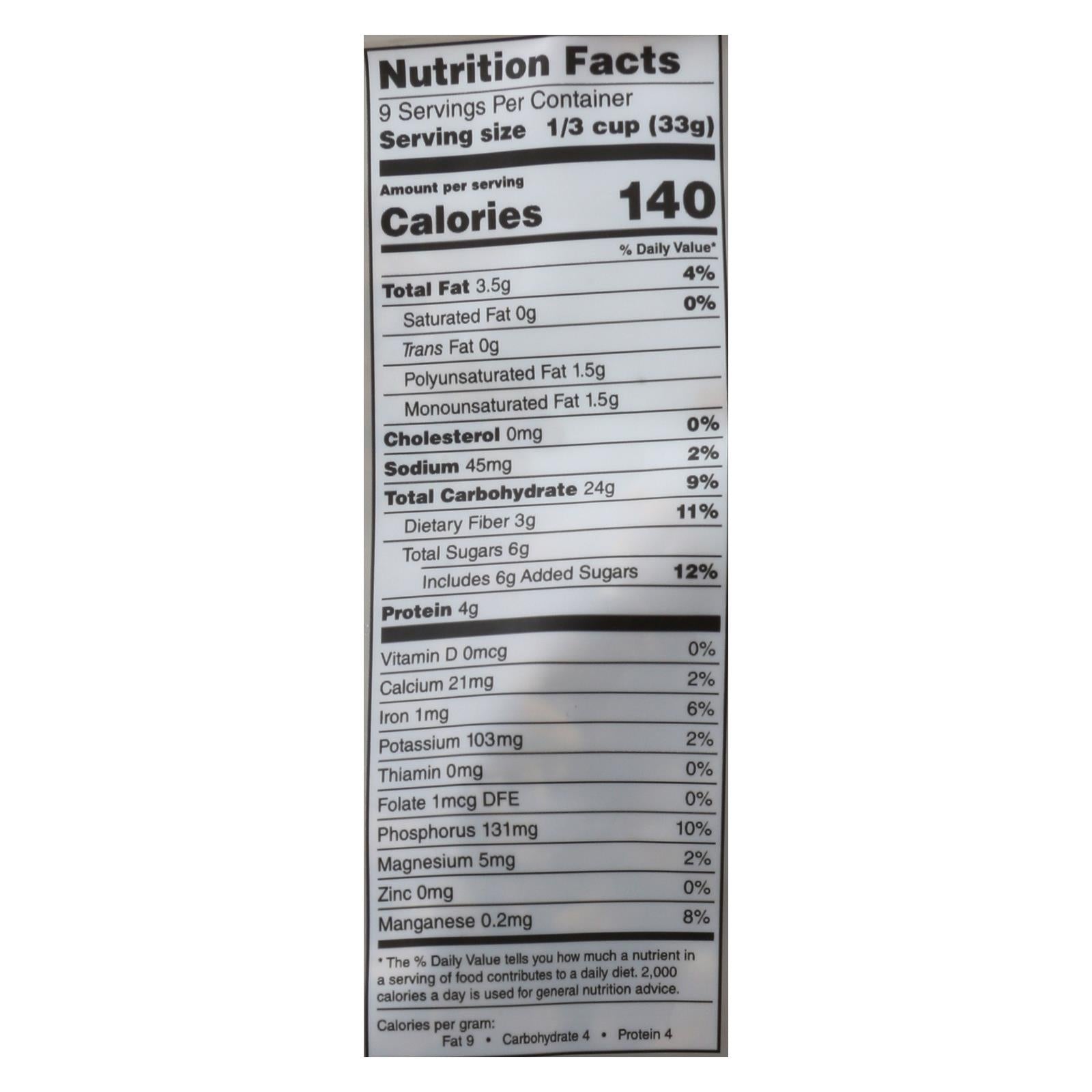 ingredients : sprouted gluten-free organic oats;organic cane sugar;organic flax;organic sunflower oil;organic cinnamon;unrefined salt;tocopherols (vitamin e)