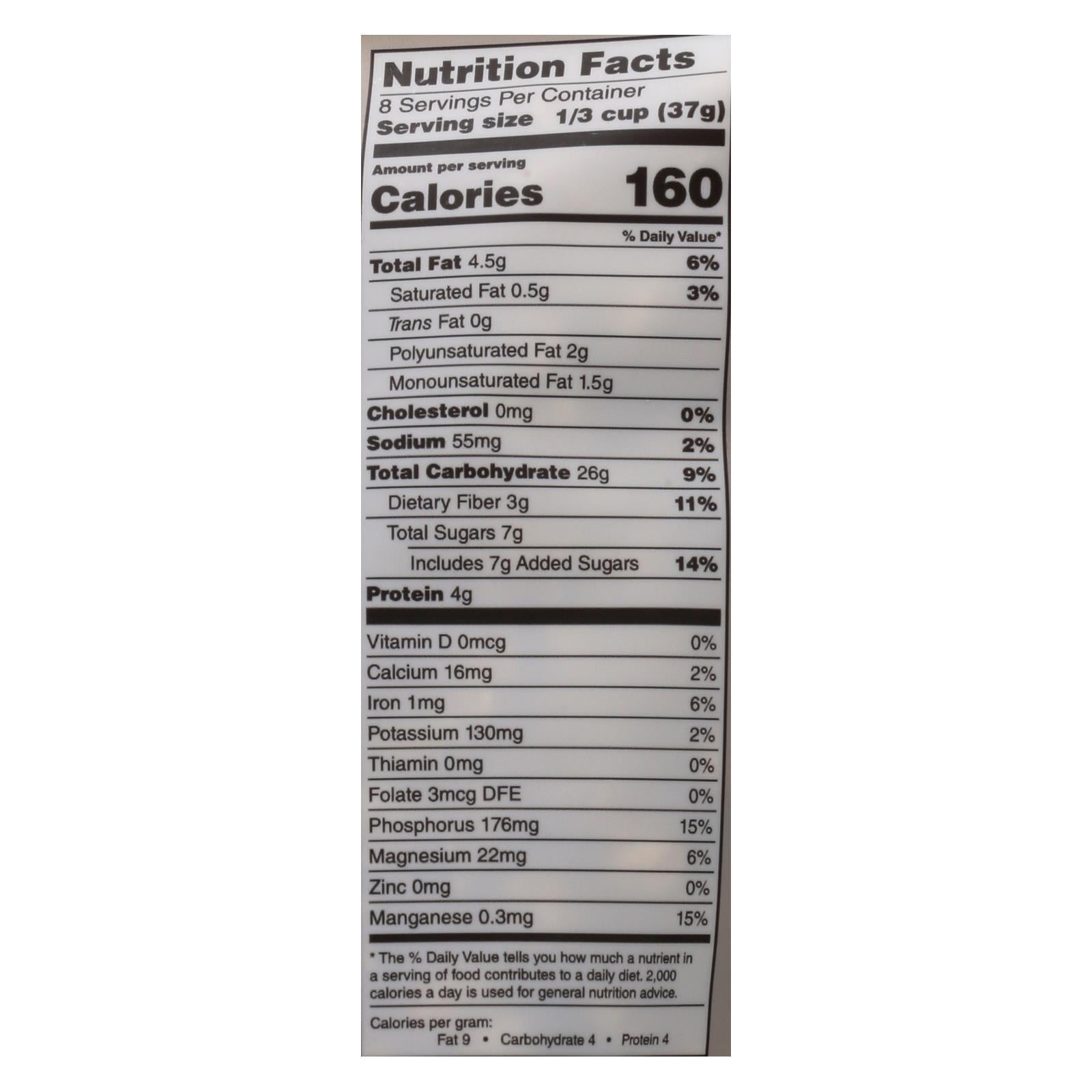 ingredients : sprouted gluten-free organic oats;organic honey;sprouted organic hemp seeds;organic cane sugar;water;sprouted organic brown rice;organic sunflower oil;unrefined salt;tocopherols;vitamin e