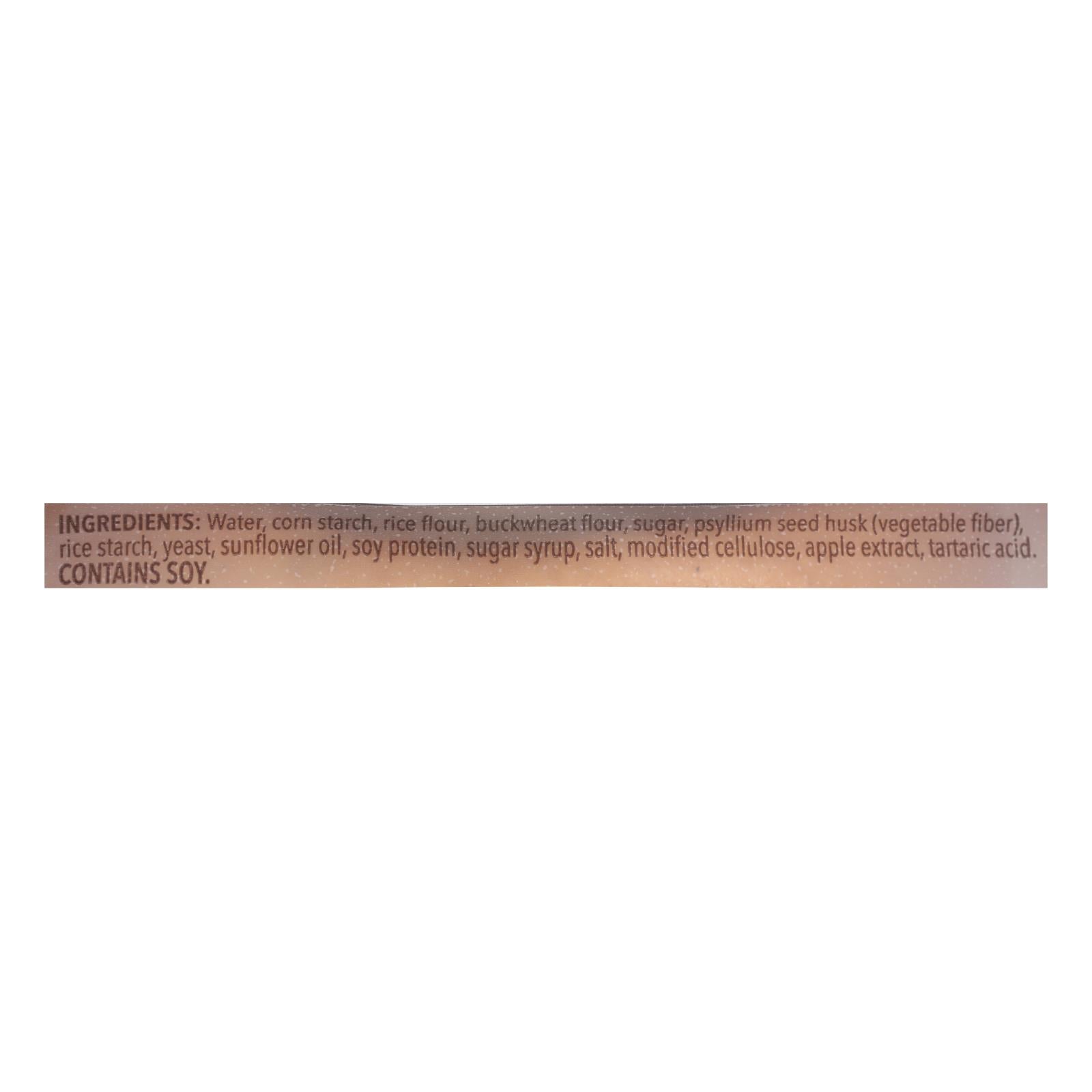 ingredients : water;corn starch;rice flour;buckwheat flour;sugar;psyllium seed husk (vegetable fiber);rice starch;yeast;sunflower oil;soy protein;sugar syrup;salt;modified cellulose;apple extract;tartaric acid