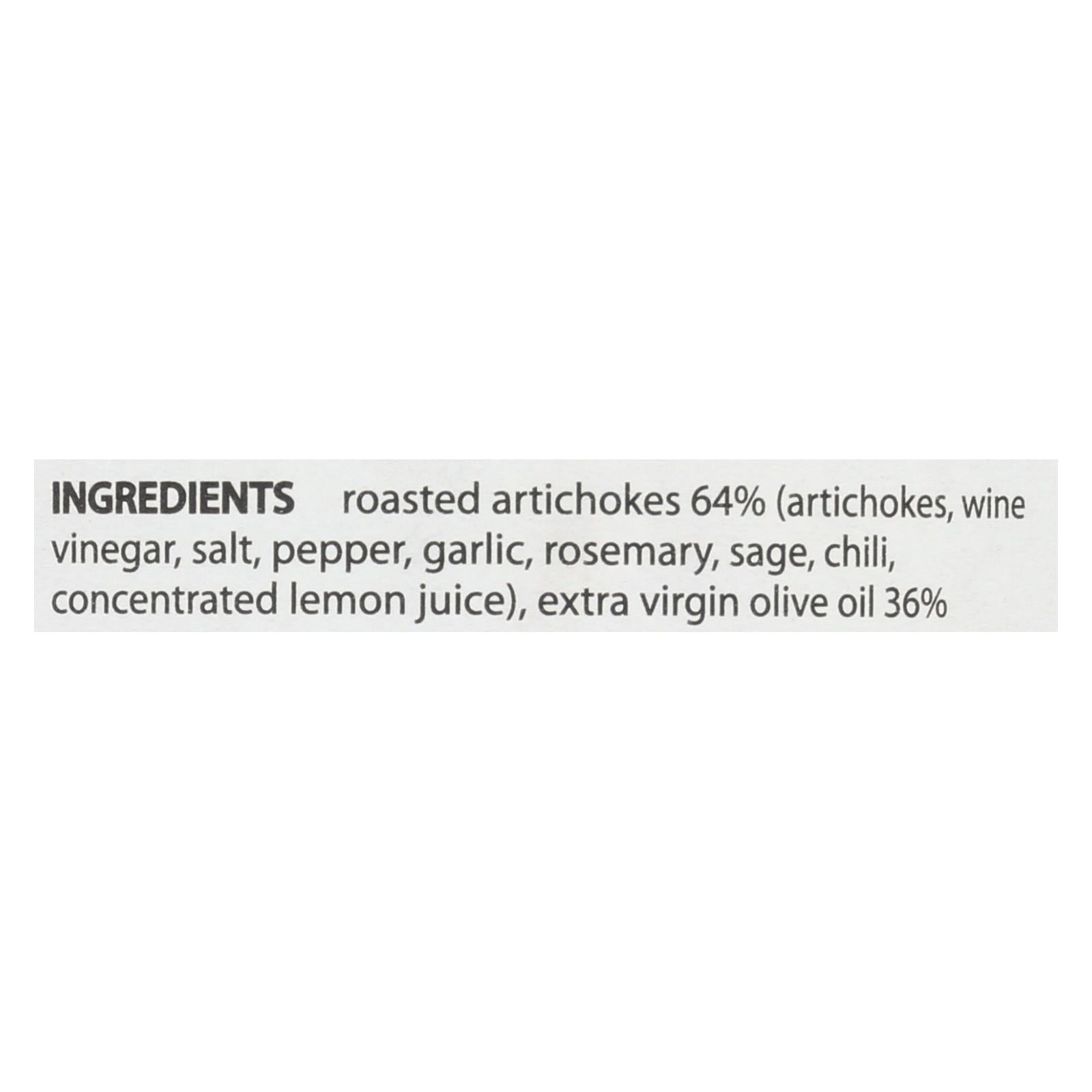 ingredients : roasted artichokes 64%;artichokes;wine vinegar;salt;pepper;garlic;rosemary;sage;chili;concentrated lemon juice;extra virgin olive oil 36%