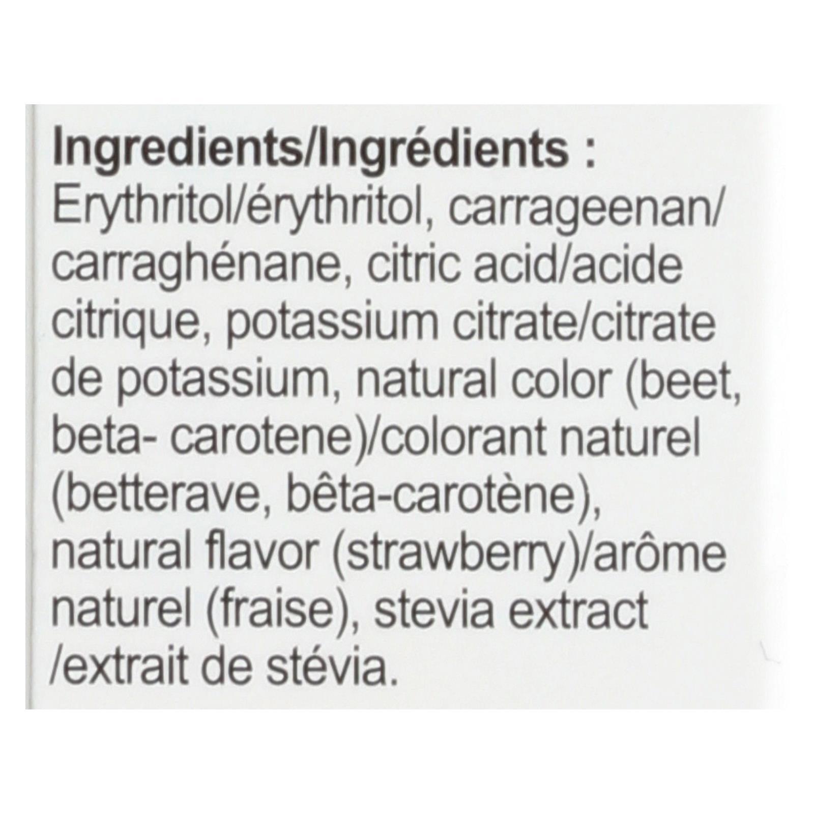 ingredients : erythritol;carrageenan;citric acid;potassium citrate;natural color;beet;beta carotene;natural flavor;strawberry;stevia extract
