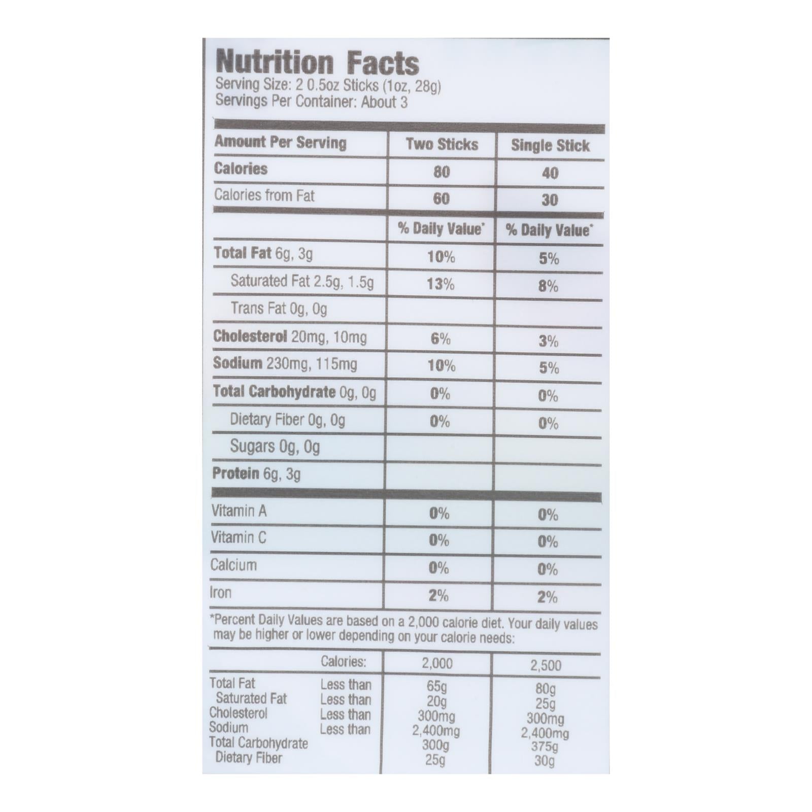 ingredients : beef;pork;sea salt;less than 2% of: spices, sugar, cherry powder, celery powder, lactic acid starter culture (not from milk), garlic powder;encased in colored (beta-carotene, caramel) beef collagen casing