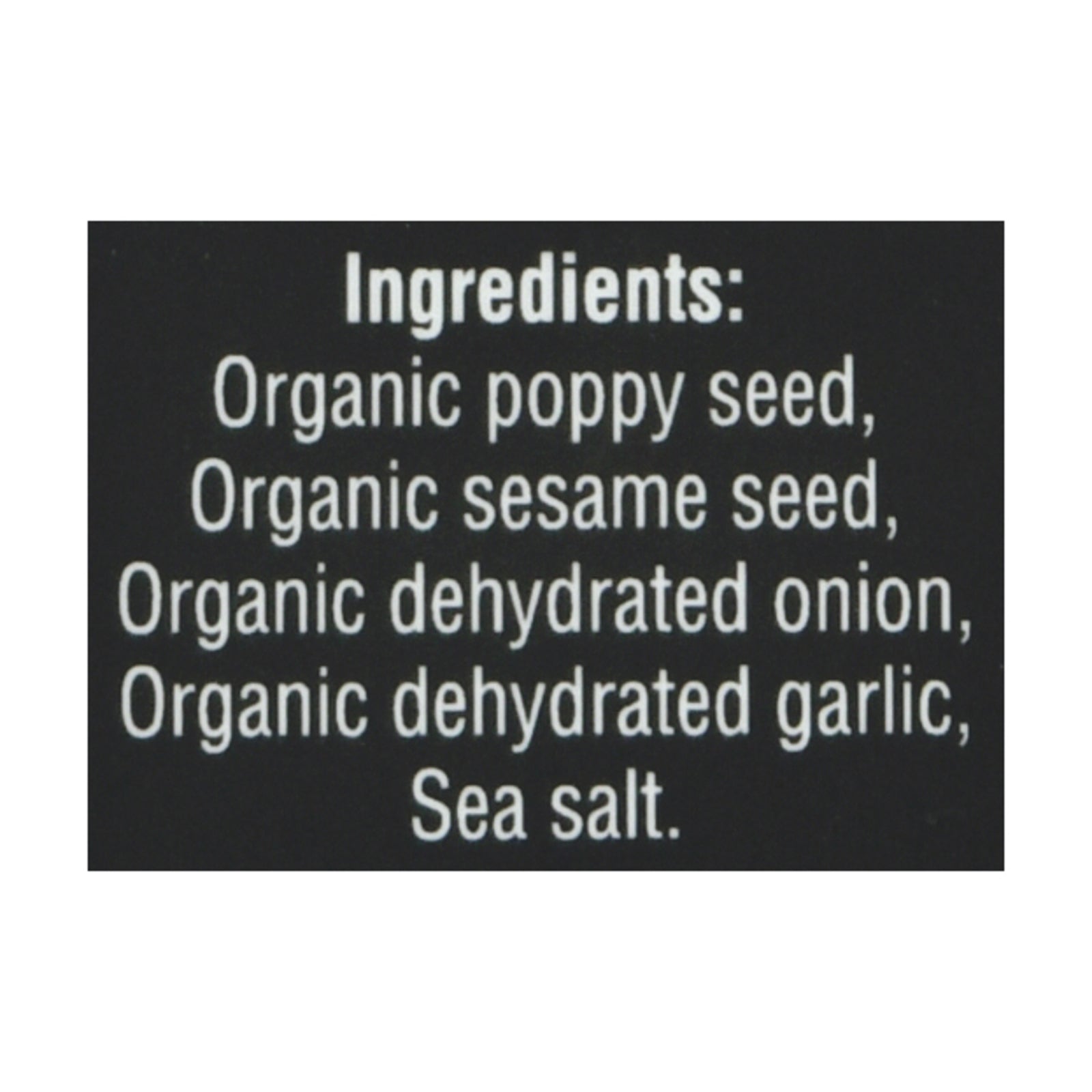 ingredients : organic poppy seed;organic sesame seed;organic dehydrated onion;organic dehydrated garlic;sea salt